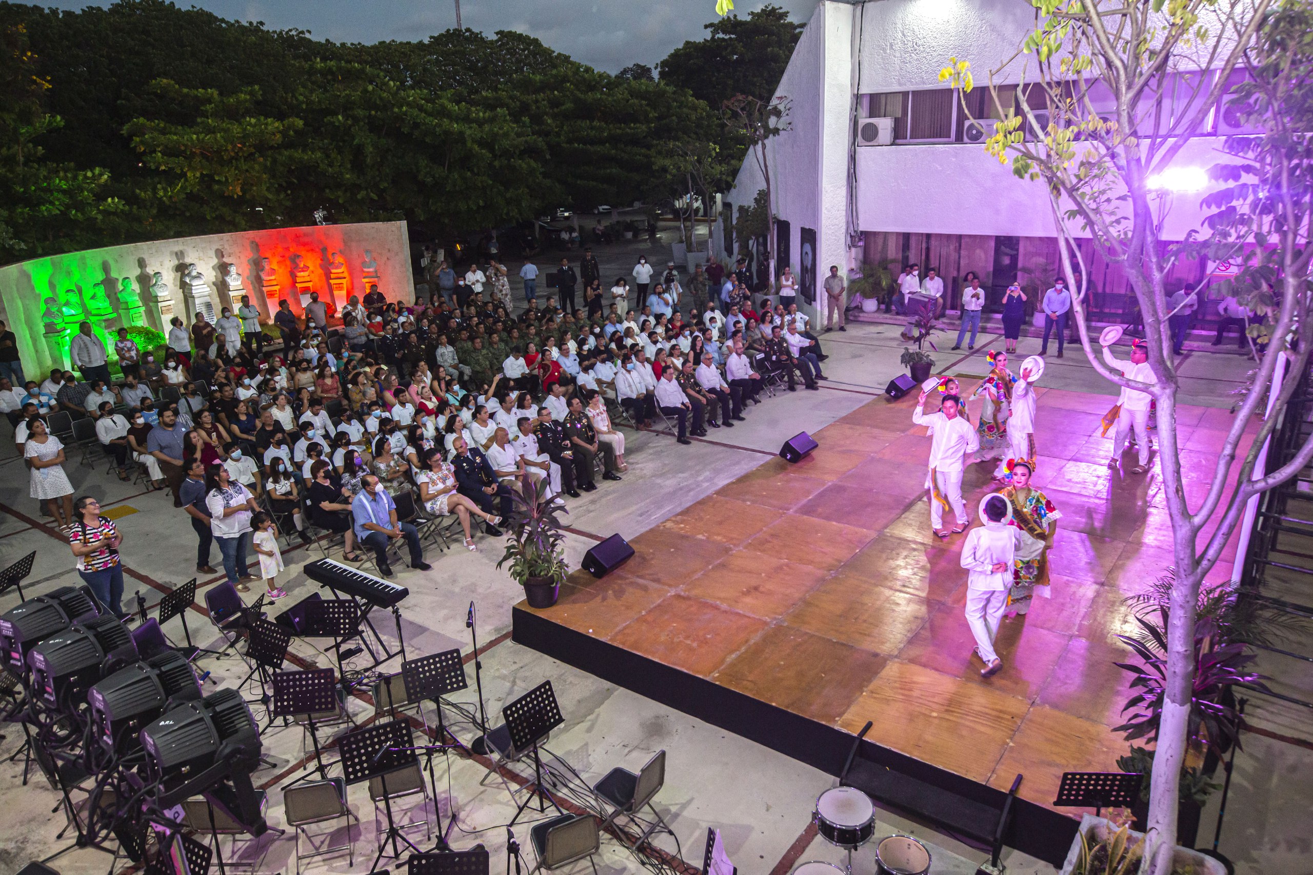 “A más de 201 años de la consumación de nuestra independencia, México es un país que reconoce en sus héroes, su enorme historia y su indudable grandeza. Hoy conmemoramos el resultado de la lucha del pueblo mexicano por su libertad, el progreso y bienestar de su gente, hoy recordamos los ideales, principios y valores por los que lucharon los próceres de la independencia nacional. Este hecho nos invita a mirar con optimismo al futuro a trabajar incansablemente para heredar una ruta de prosperidad y felicidad para cada uno de los hijos nacidos en nuestra querida Patria”, expresó en su mensaje, Liborio Vidal Aguilar.Junto a autoridades educativas e invitados especiales reunidos en la explanada del edificio central de la Segey, presenciaron la conferencia “El día en que México comenzó a ser libre”; a cargo del Dr. Víctor M. Arjona Barbosa. Posteriormente se desarrolló el programa cultural, inició con la participación de la Orquesta Sinfónica Infantil de Tahmek y Mayapán, bajo la dirección del maestro Emilio Bueno; seguidamente la maestra Lolina Gamboa Jiménez declamó la poesía “México, creo en ti”, de Ramón López Velarde y, para cerrar, una muestra de jaranas yucatecas a cargo del ballet folclórico de la Uady.