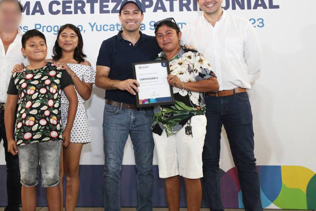 Por lo que toca a los 205 certificados, los entregó a familias que se ubican en la calle 55-C entre 58 y 60, de Flamboyanes. Dentro de los procesos que lleva a cabo el Instituto de Vivienda (IVEY), está la regularización de asentamientos en Mérida, Tekax, Motul y Progreso, entre otros municipios, con el fin de dar certeza jurídica a las familias; en los 4 años de la presente administración, 950 personas en la capital han contratado y firmado para tener este beneficio, en un total de 13 terrenos.