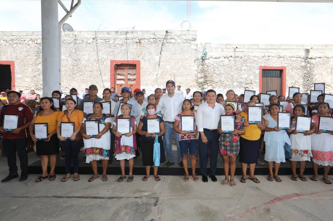 En gira de trabajo por la comisaría de Tesoco, Valladolid, junto al alcalde anfitrión, Alfredo Fernández Arceo, Vila Dosal entregó la rehabilitación de la Casa Ejidal y apoyos del Programa de Seguridad Alimentaria, fertilizantes, azúcar y abejas reina, para impulsar la producción apícola del estado.