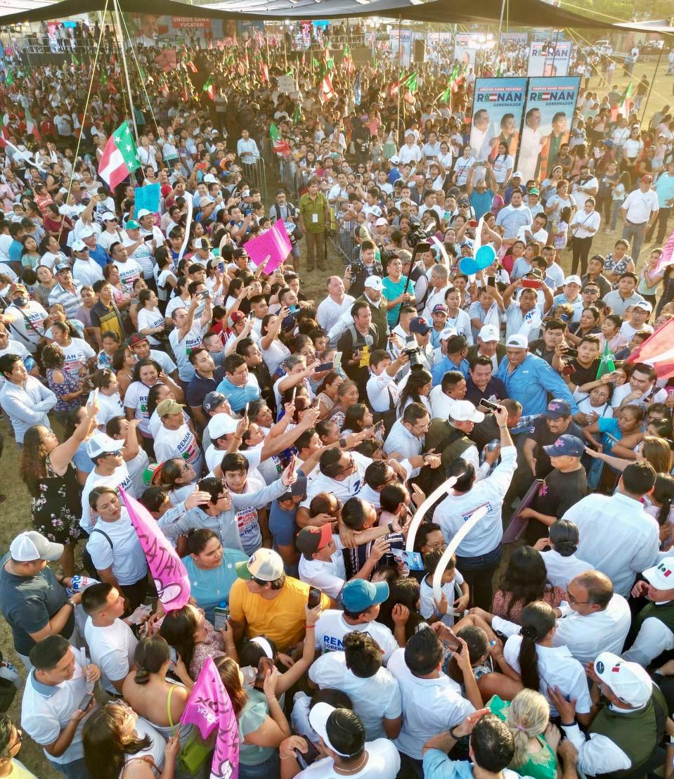 En multitudinario evento en Ticul y acompañado de la Candidata Presidencial Xóchitl Gálvez, Renán Barrera anunció que “con Renán toca doble, pues en los próximos 6 años, yucatecas y yucatecos tendrán beneficios dobles, ya que a los apoyos nacionales se sumarán nuevos apoyos estatales”