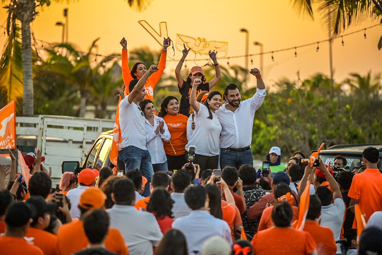La rodada pintó de naranja el puerto al paso de cientos de simpatizantes, principalmente jóvenes y familias, que ondearon las banderas de Movimiento Ciudadano al ritmo del “fosfo, fosfo” entonada por Yuawi y el lema “Mi vida es Yucatán”.