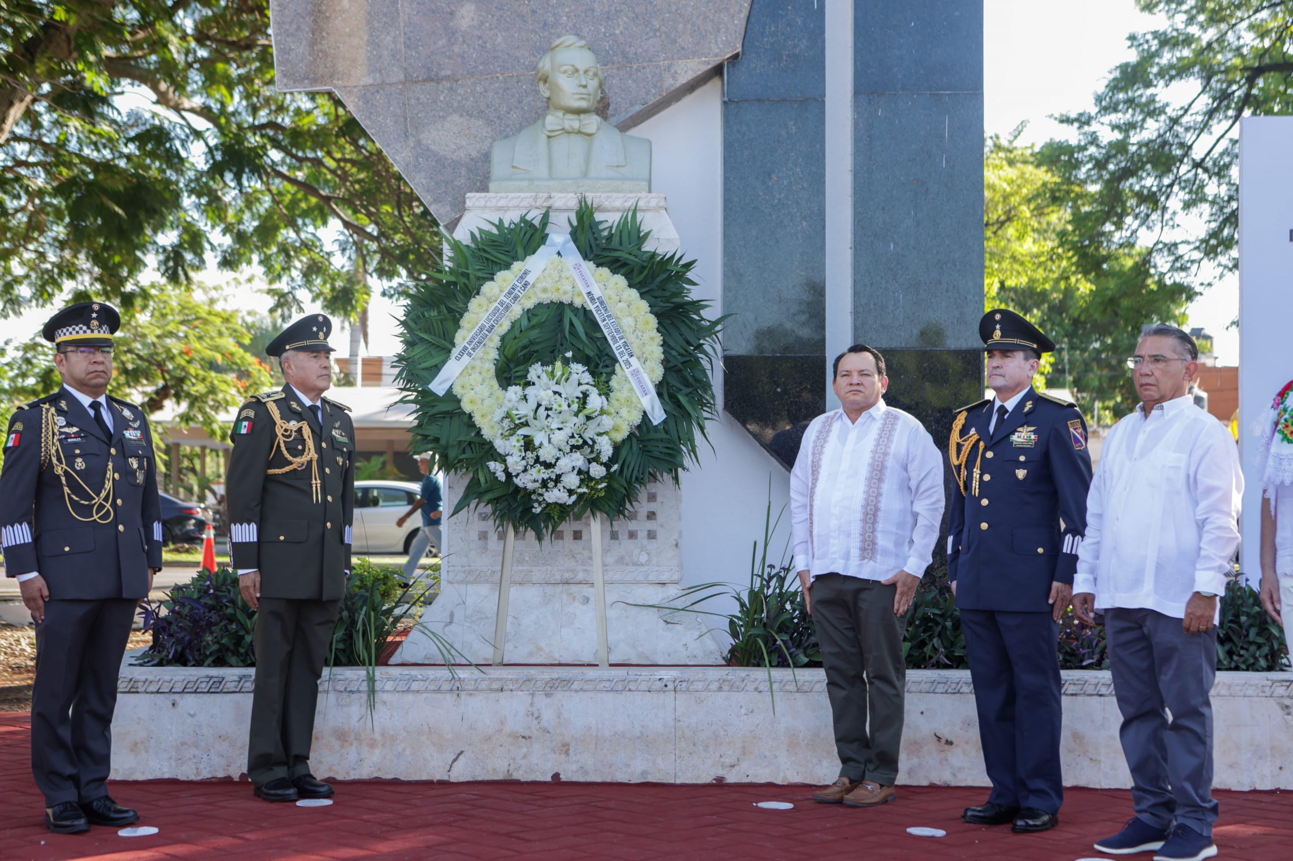 Ante el Comandante de la 32/a Zona Militar, el General de Brigada Diplomado de Estado Mayor Bernardo Reginaldo Reyes Herrera, el mandatario estatal recordó que esta gesta heroica no fue en vano, ya que se mantiene como un ejemplo eterno de patriotismo, lealtad y valentía, valores que hoy —dijo— deben seguir guiando a México y Yucatán.