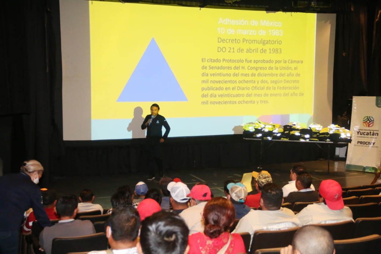 Recibieron sus uniformes con el logo internacional de Protección Civil e identificaciones los brigadistas de Acanceh, Baca, Bokobá, Cacalchén,Cenotillo, Conkal, Dzilam González, Dzemul, Hoctún, Ixil, Izamal, Mérida, Mocochá, Motul, Muxupip, Seyé, Sinanché y Suma de Hidalgo.También se sumaron al acto elementos y coordinadores de Tahmek, Temax, Tepakán, Teya, Timucuy, Tixkokob, Yaxkukul y Yobaín, quienes recibieron sus materiales de manos  de la representante de Enlace de Planeación del Gobierno del Estado, Gabriela Escalante Marrufo,  y del secretario técnico de Procivy, José Dorantes Carvajal, además del propio Alcocer Basto.Con este acto suman ya tres los  encuentros regionales con integrantes de las coordinaciones municipales para dotar de uniformes e identificaciones con la que se avanza en la integración de un frente común estatal para la salvaguarda de los habitantes en todas las demarcaciones.  Las anteriores se realizaron en Peto y Maxcanú.En el encuentro cordial y amistoso con coordinadores e integrantes de las brigadas municipales, entre ellos el de Mérida, Christian Chan Estrella, reunidos en el Teatro Armando Manzanero de esta ciudad, Alcocer Basto resaltó la importancia de las acciones de protección civil tras su creación  en los convenios de Ginebra de 1977.