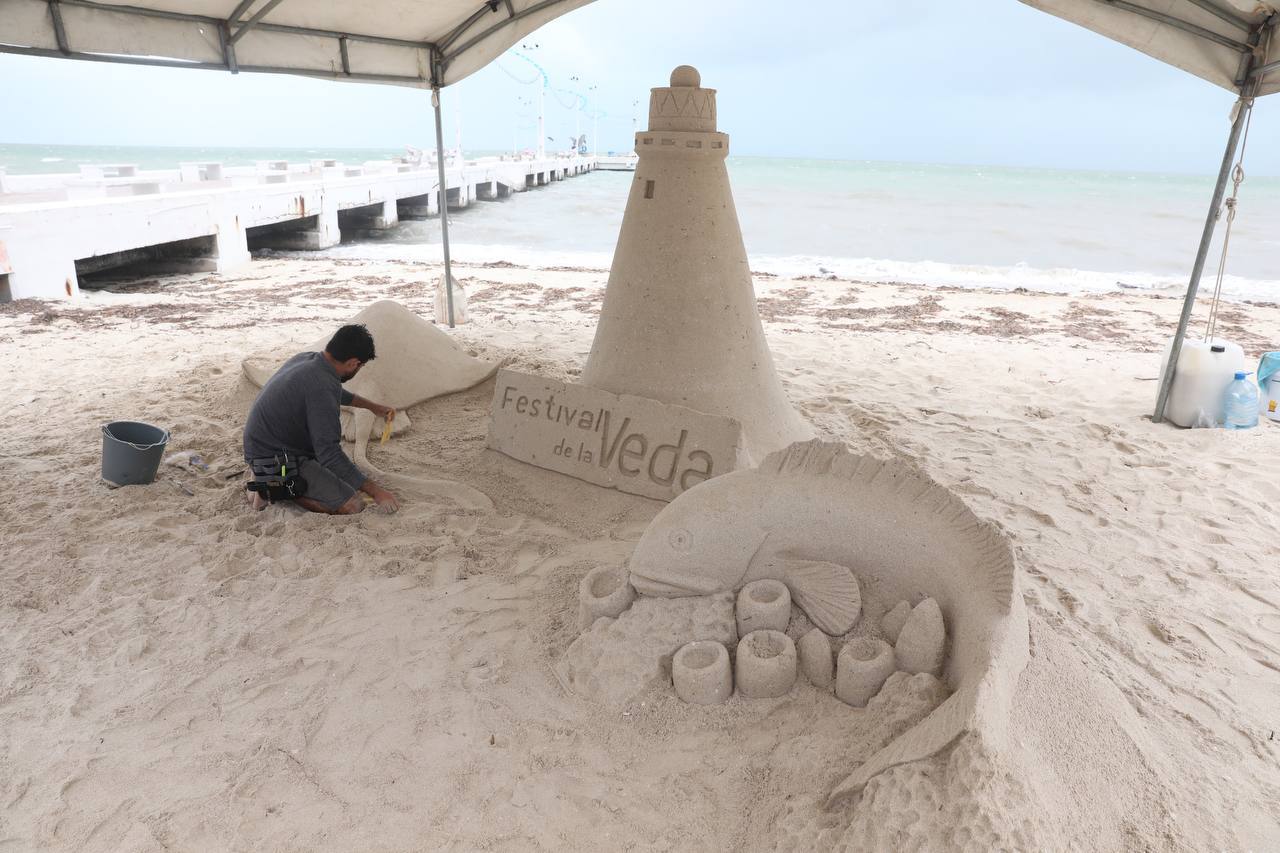 El Festival de la Veda 2023 continúa en Telchac Puerto con actividades como la exposición de esculturas de arena, la muestra gastronómica a cargo de cocineras tradicionales, la banda de marcha Muuk’ Báalam y el mariachi de la SSP, con lo que se logra atraer a visitantes, resultado de la estrategia que impulsa el Gobernador Mauricio Vila Dosal para respaldar la economía de las y los pescadores durante la difícil temporada de restricción de captura del Mero.