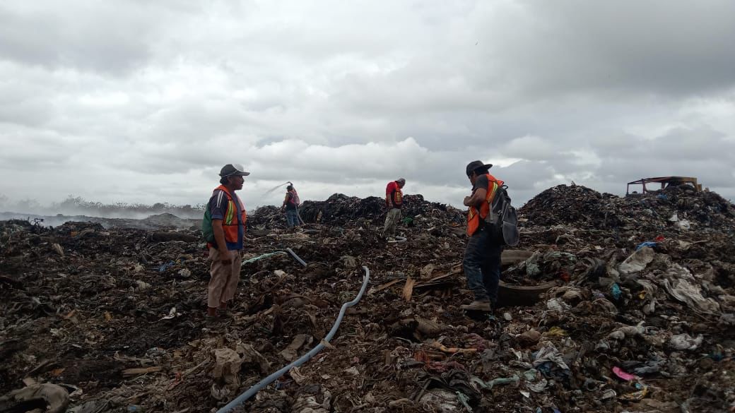 En Umán las autoridades municipales continuan trabajando de forma puntual y coordinada con las estatales, dando solución de forma eficaz al incendio que fue provocado en el basurero municipal por personas sin hogar.