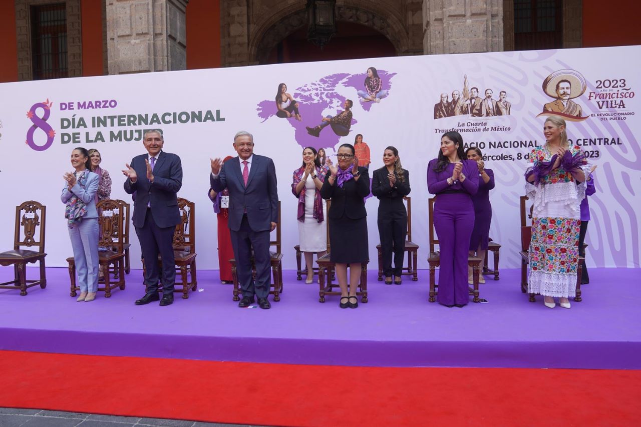En presencia del presidente López Obrador, de los secretarios de Gobernación, Adán Augusto López Hernández y de Relaciones Exteriores, Marcelo Ebrard Casaubon, de la jefa del Gobierno de la Ciudad de México, Claudia Sheinbaum Pardo, mandatarias estatales, Senadoras y Diputadas federales, así como integrantes del gabinete federal, destacó la importancia de las mujeres en el desarrollo e historia de México.