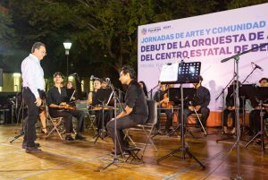 Para ofrecer oportunidades de desenvolvimiento escénico y desarrollo artístico para las y los alumnos del Centro Estatal de Bellas Artes, el titular de la Secretaría de Educación del Gobierno de Estado, Liborio Vidal Aguilar atestiguó el debut de la primera orquesta de estudiantes de dicha institución.