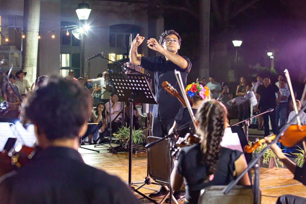 Destacó en la ejecución la participación de la estudiante María del Carmen Virgilio Hernández, concertino de la agrupación que además dirigió una pieza. El proyecto forma parte de la Coordinación de Música, a cargo del maestro Sonny Calderón Soto.