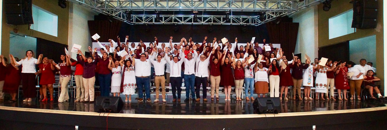 En una demostración de fuerza y unidad, en el evento estuvieron también aspirantes que competirán por la Senaduría, que completan el equipo que saldrá a conquistar la voluntad ciudadana y a promover la revolución de las conciencias para ganar las elecciones y consolidar la 4T en Yucatán.
