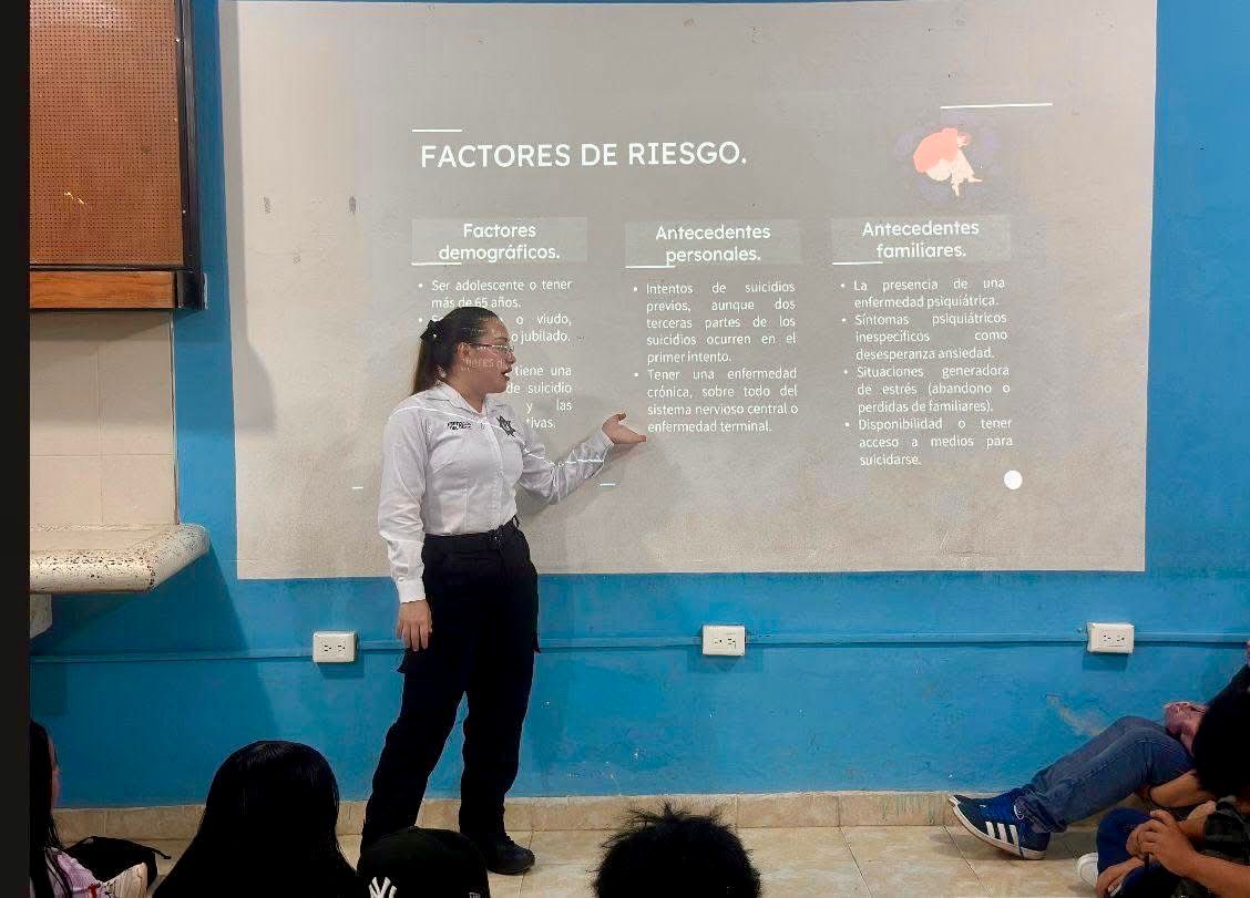 A través del Departamento de Prevención al Delito se ofrecieron temas como tipos de suicidio, factores de riesgo, grupos vulnerables, señales de alerta, signos no verbales, factores para prevenir la conducta suicida y cómo ayudar a la persona con riesgo suicida.