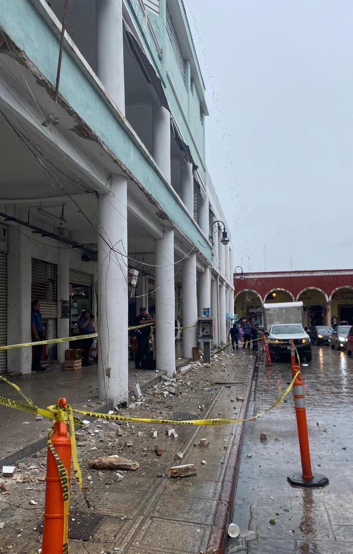 El mercado Lucas de Gálvez presentó desprendimiento de una parte de cornisa de la fachada, por lo que se retiró a los vendedores ubicados en el área.
