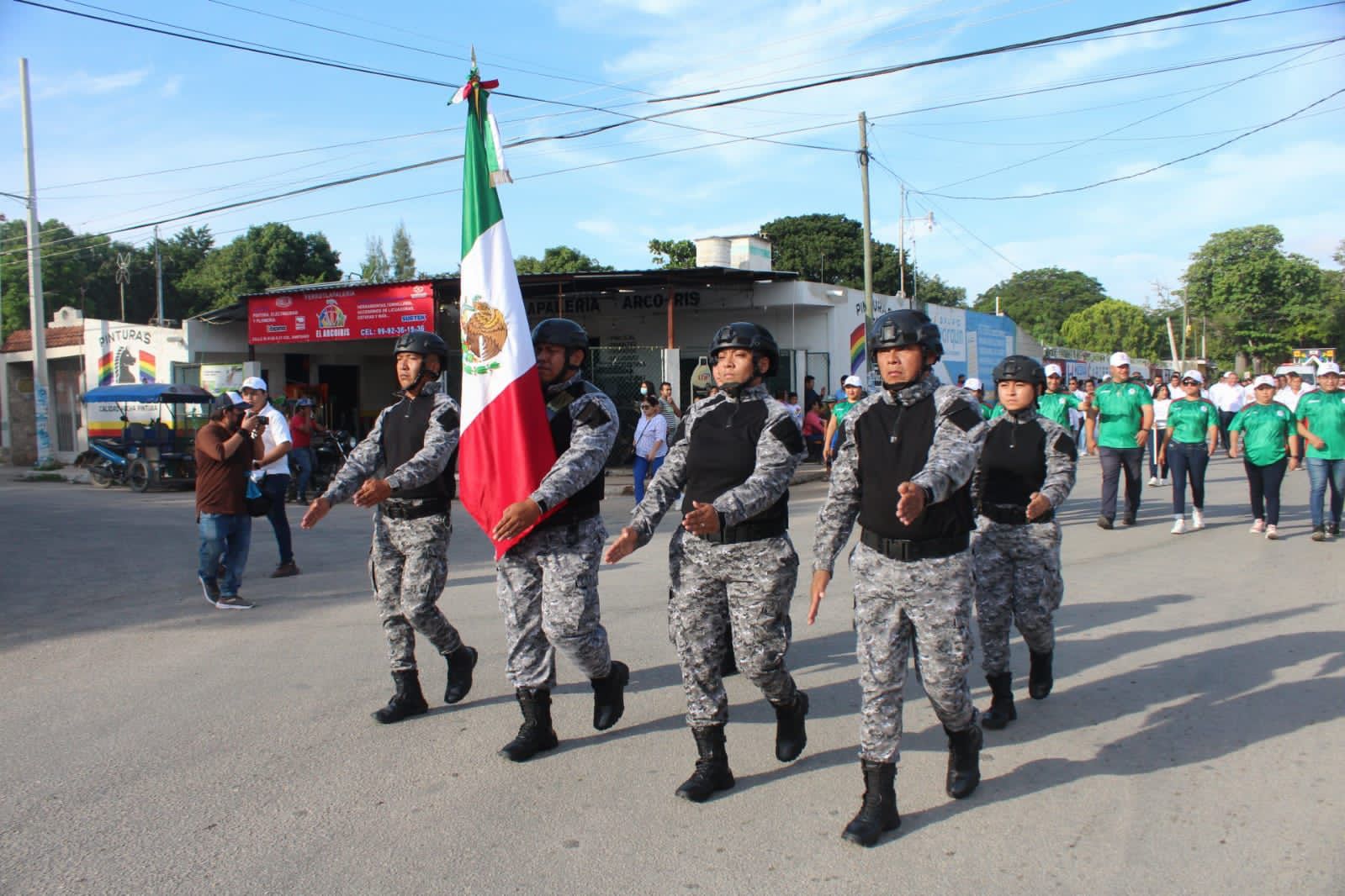 Con la participación de 2,162 alumnos de 19 escuelas pertenecientes a primarias, secundarias y preparatorias; los contingentes recorrieron las principales calles del municipio luciendo los colores de nuestra bandera tricolor.