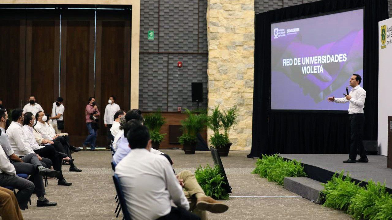 El Gobernador Mauricio Vila Dosal sostuvo un encuentro con rectores y directores de universidades públicas y privadas del estado, donde abordó temas relacionados con el regreso seguro a clases, el panorama actual de la pandemia en la entidad y la prevención y atención de la violencia contra las mujeres u otros grupos en situación vulnerable dentro del ámbito escolar.