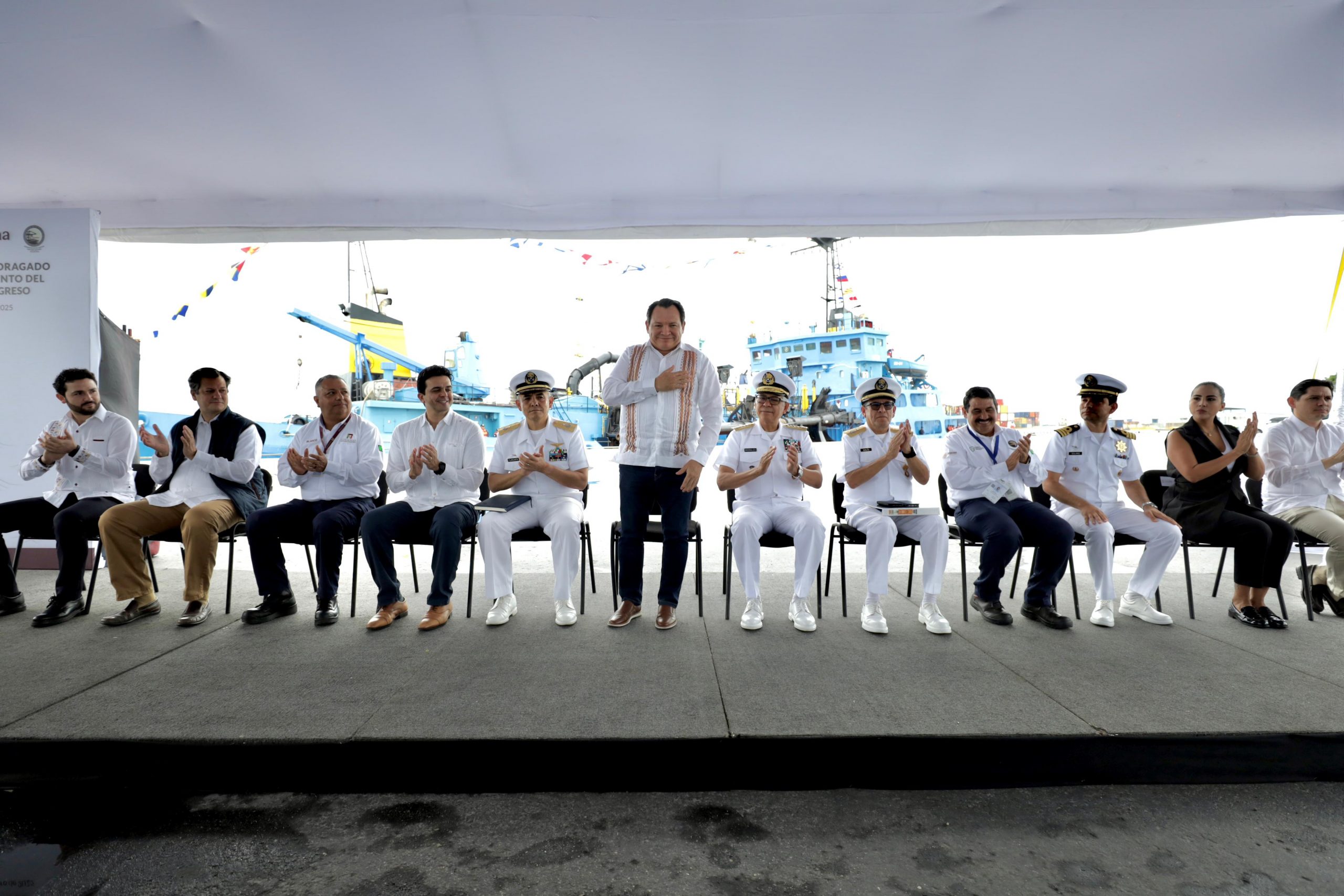 EL TITULAR DE LA SECRETARÍA DE LA MARINA (SEMAR), RAYMUNDO MORALES ÁNGELES Y EL GOBERNADOR JOAQUÍN DÍAZ MENA, ENCABEZARON EL ACTO QUE POSICIONA A YUCATÁN COMO UN EJE CENTRAL EN LA RED GLOBAL DE COMERCIO MARÍTIMO.