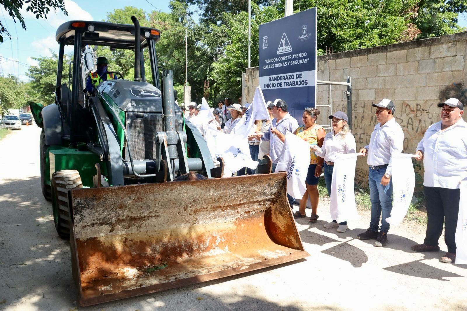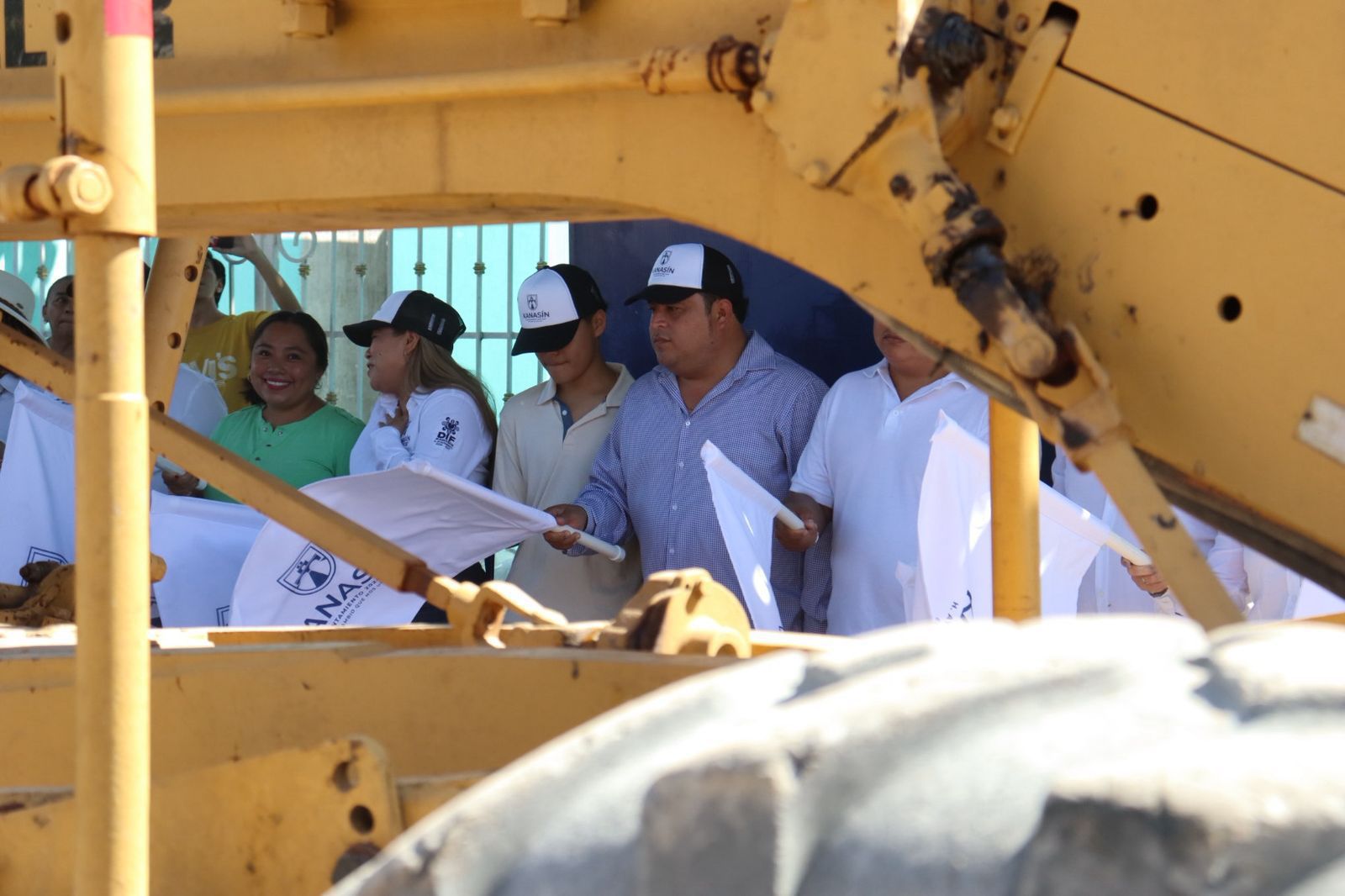 banderazo de inicio de los trabajos que se realizarán en esas calles del municipio mediante el programa “Unidos construyendo calles dignas y seguras”.