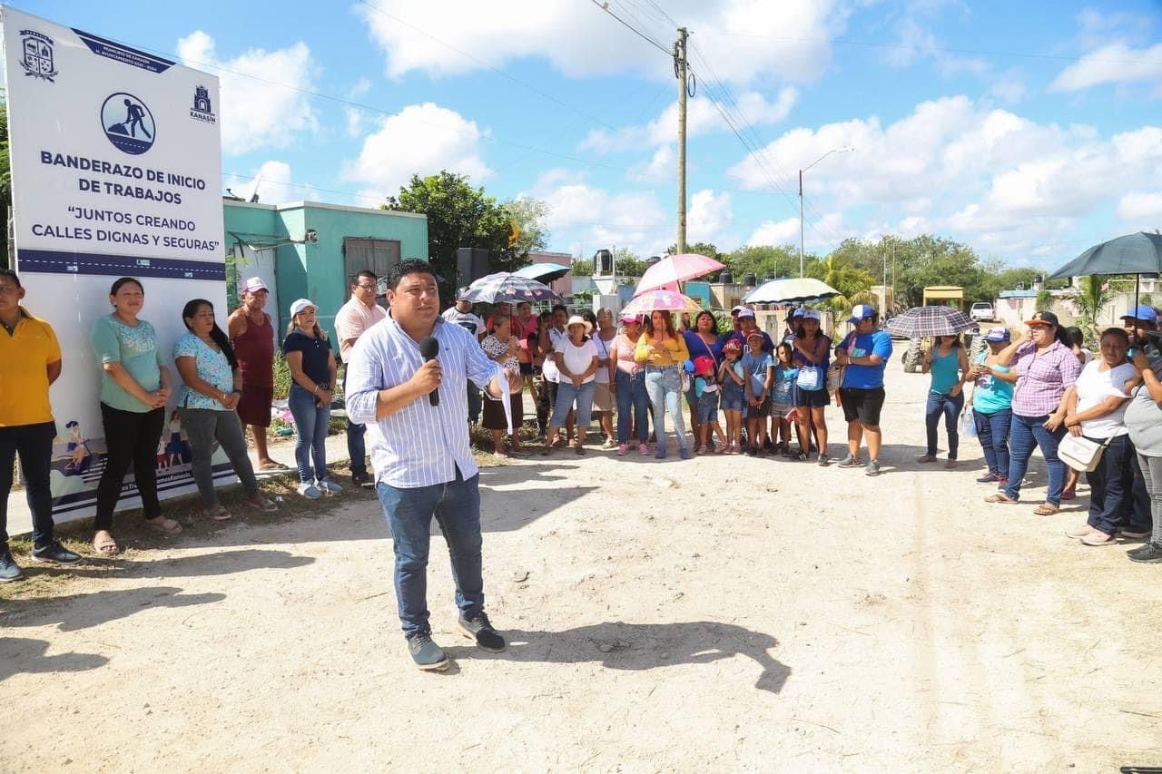 Acompañado de integrantes de su Cabildo, el Edil inauguró el inicio de los trabajos en las calles 27 por 34 y 40 de la CROC, la 40 por 75 y 75-B de la colonia Cuauhtémoc y la 60-A por 59 de la colonia Mulchechén. Estos trabajos también incluirán la construcción de pozos pluviales, con lo que se evitarán encharcamientos en esas vialidades.
