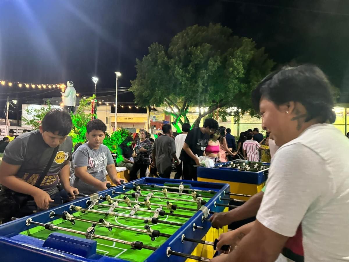 Serpientes y escaleras, un cuadro para tomarse fotos y el toro mecánico, todo eso completamente gratis.