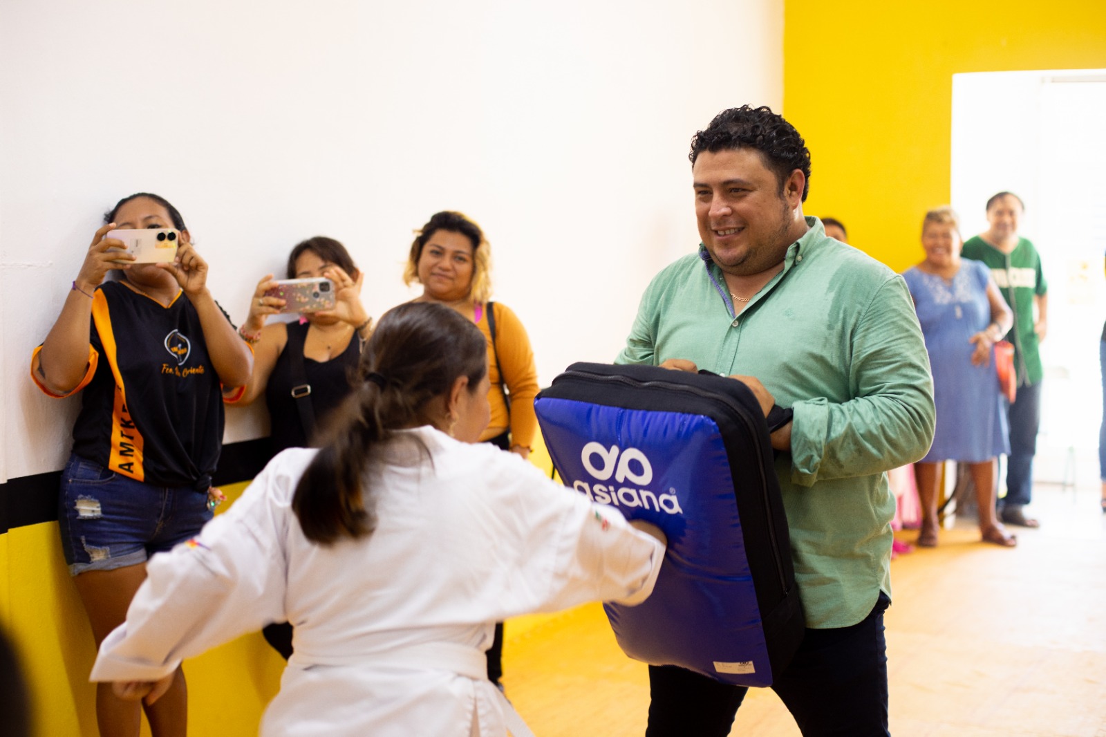 El munícipe fue invitado a dar unas patadas punch y también a practicar con los pequeños.