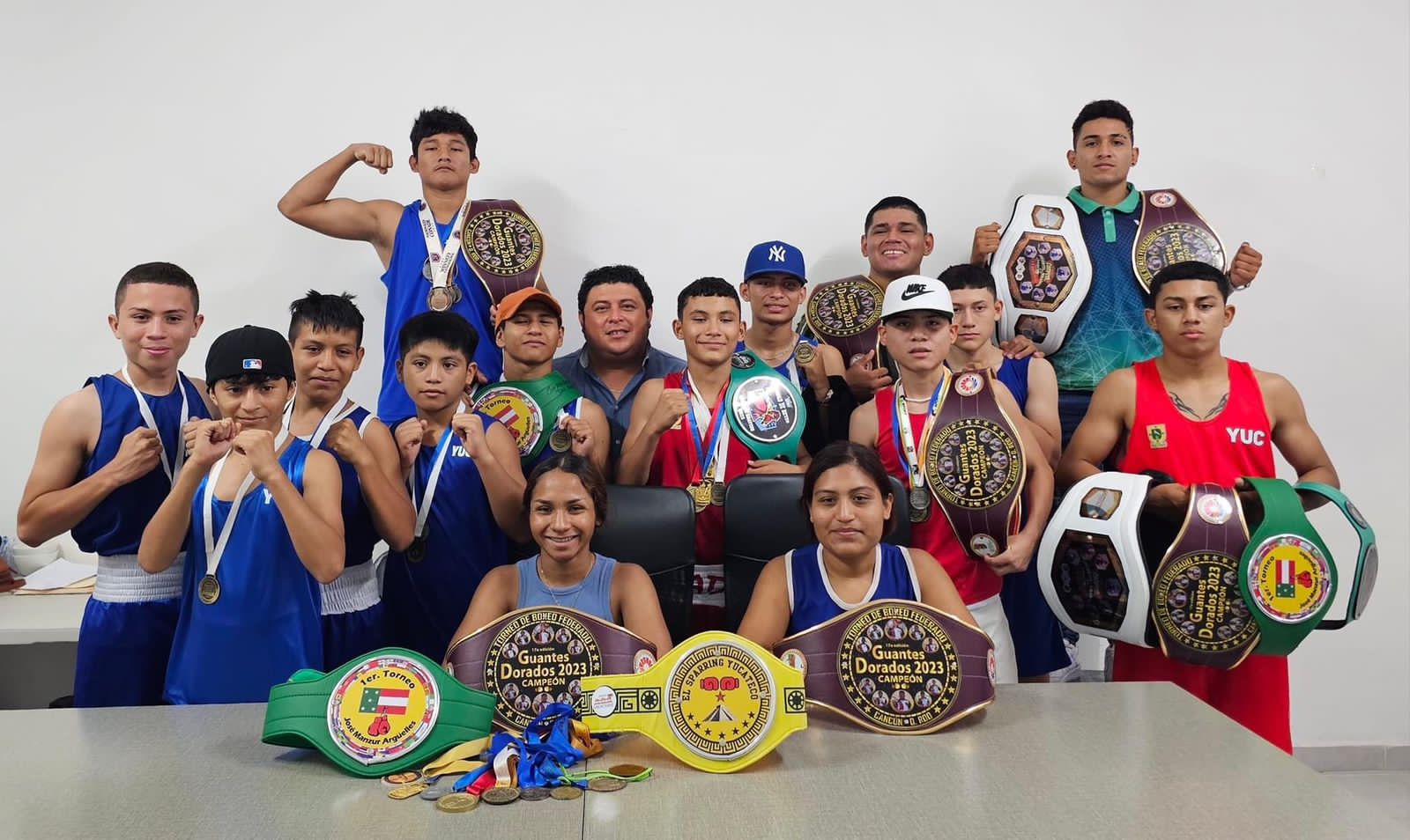 Jóvenes pugilistas del municipio de Kanasín se reunieron con el alcalde Edwin Bojórquez Ramírez para mostrarle los cinturones y medallas obtenidas durante su participación en el torneo “Guantes Dorados”, que el pasado fin de semana se realizó en la ciudad de Cancún, Quintana Roo.