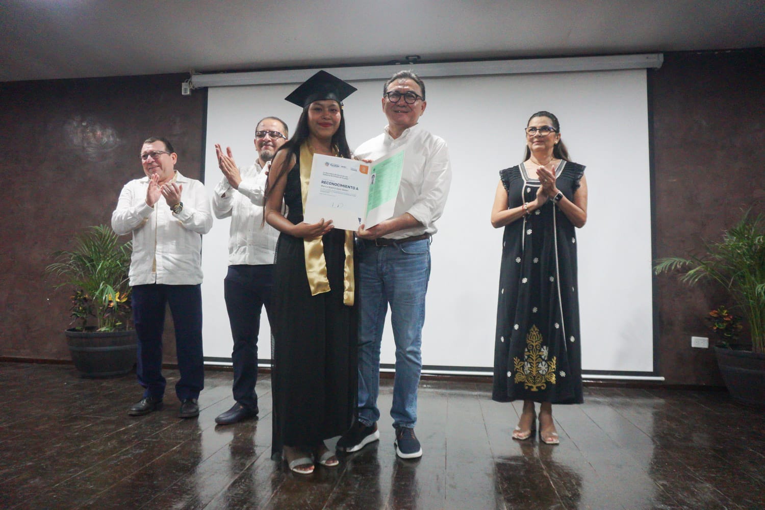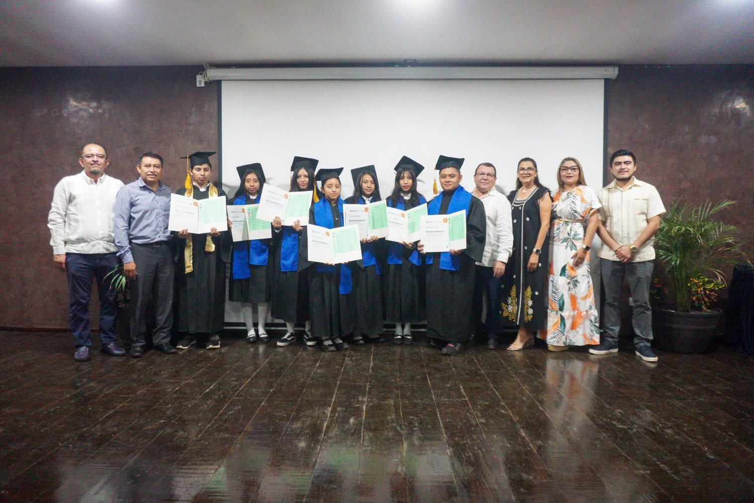 En la ceremonia, se reconoció a los estudiantes con los mejores promedios, entre ellos, Blanca López Balam y Danilú Vera Chin del plantel Chelem, Progreso; Sergio Hau Chan del plantel Tesoco, Valladolid; Jazmín Patrón Caamal, del plantel Lepán, Tecoh así como Laura Balam Cetzal del plantel Dzalbay, Temozón.