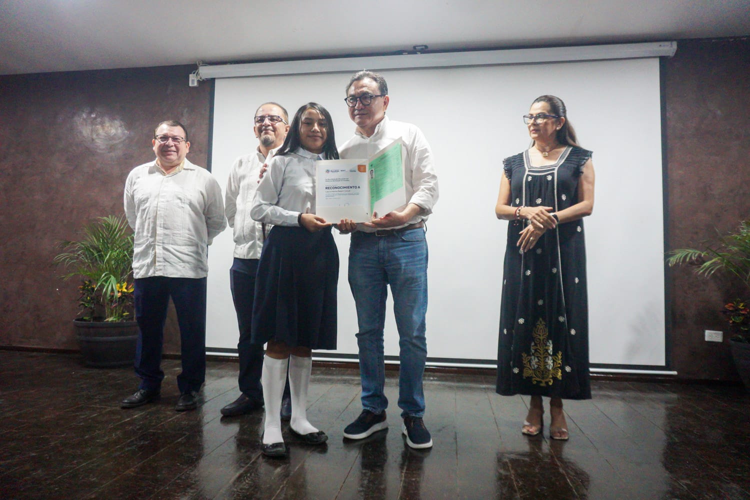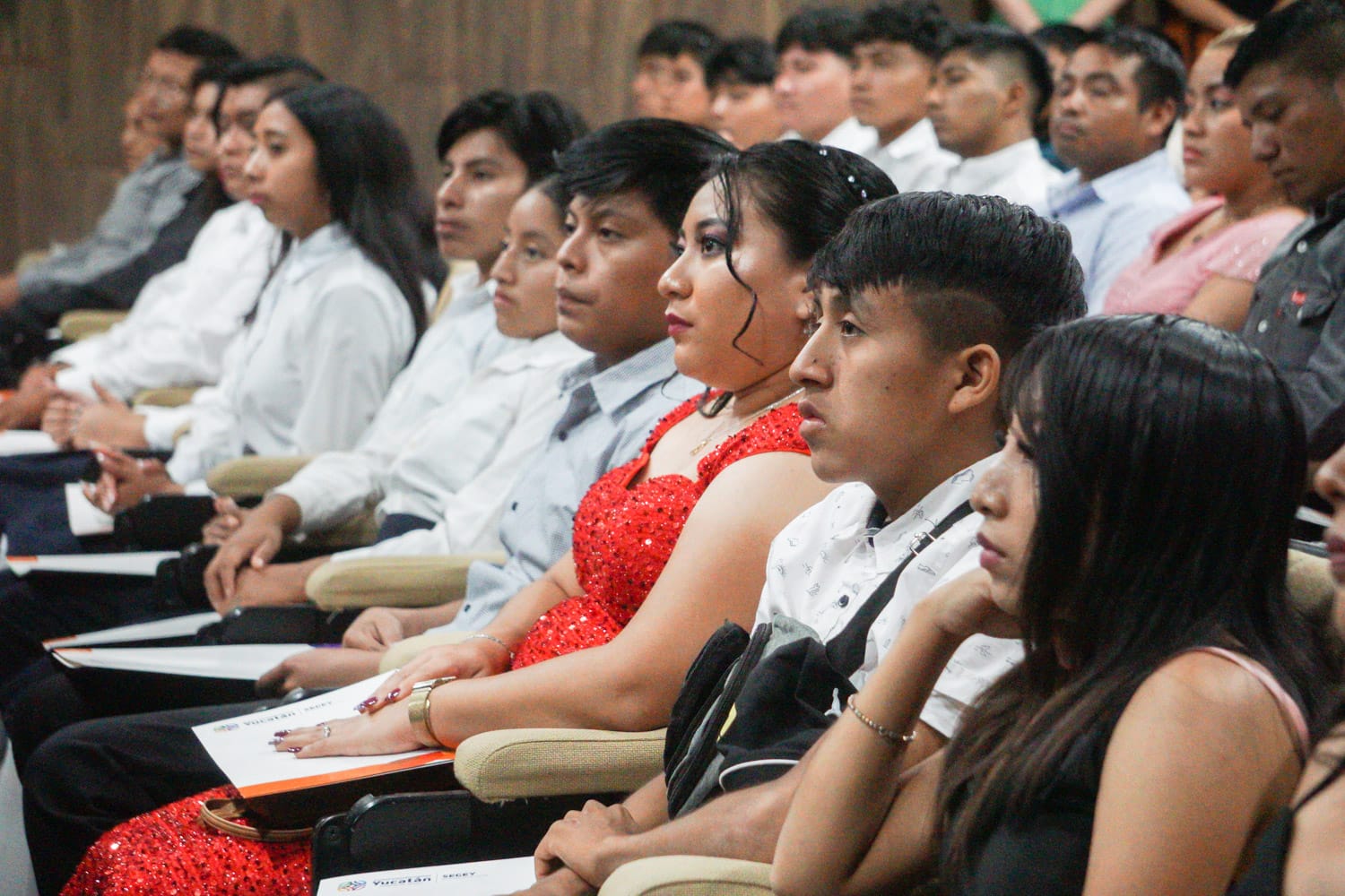 En la ceremonia, se reconoció a los estudiantes con los mejores promedios, entre ellos, Blanca López Balam y Danilú Vera Chin del plantel Chelem, Progreso; Sergio Hau Chan del plantel Tesoco, Valladolid; Jazmín Patrón Caamal, del plantel Lepán, Tecoh así como Laura Balam Cetzal del plantel Dzalbay, Temozón.