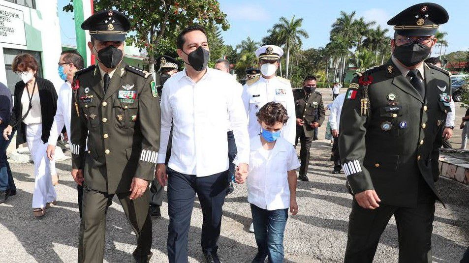 Junto con el comandante de la X Región Militar, General de División Homero Mendoza Ruiz, Vila Dosal encabezó, acompañado de su hijo, Mauricio, la ceremonia por el 109 aniversario de la formación del Ejército Constitucionalista y reafirmó su compromiso con mantener los índices de seguridad en el territorio, pues “con estas acciones, probamos que, aquí, en Yucatán, lo que importa, sobre cualquier voluntad, es el diálogo; aquí, no existen las distinciones partidistas, pues los problemas sociales que aquejan a nuestra población no tienen colores”.