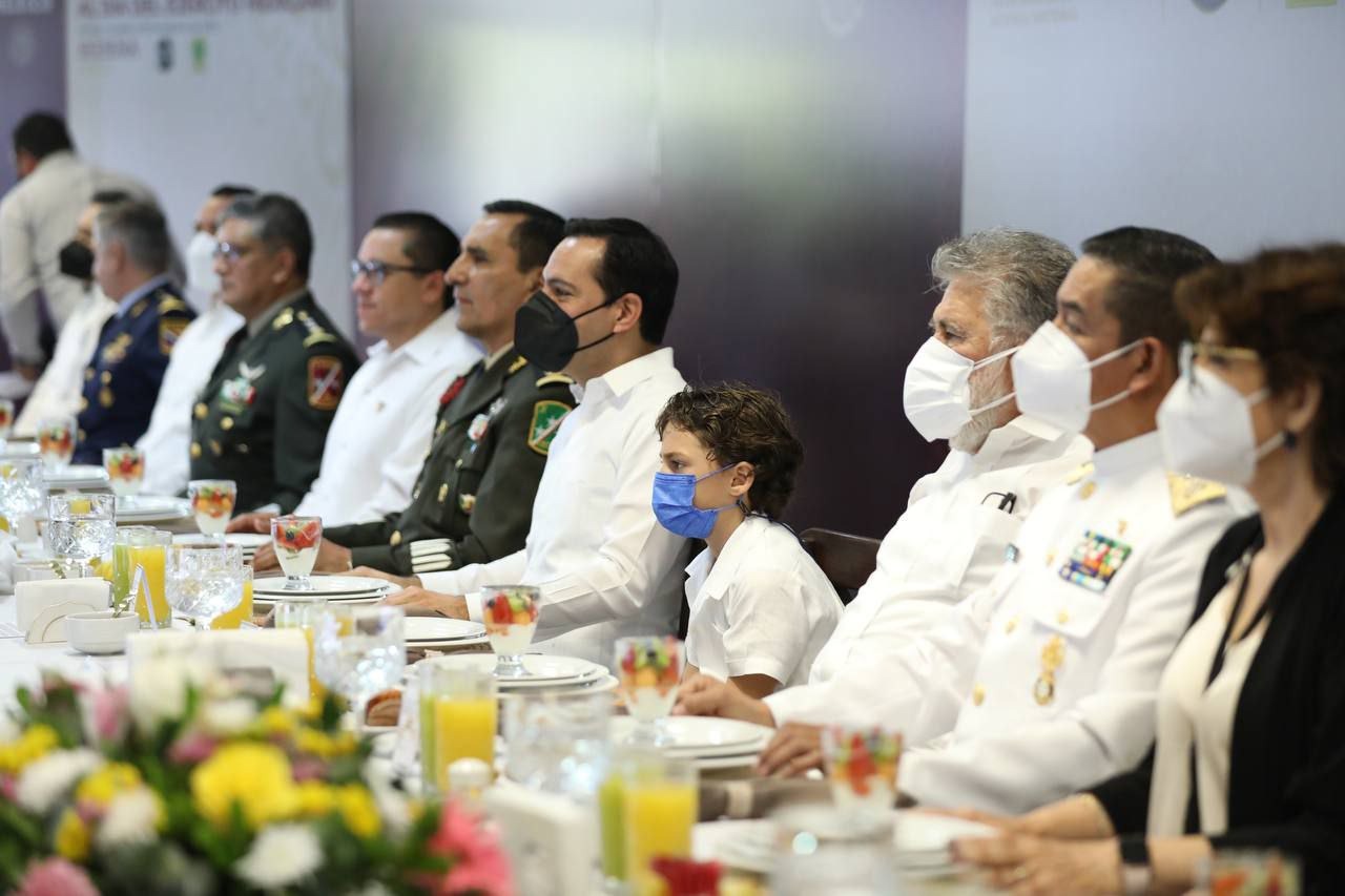 Acompañado de los titulares de la Secretaría General de Gobierno y Seguridad Pública (SSP), María Dolores Fritz Sierra y Luis Felipe Saidén Ojeda, respectivamente, Vila Dosal reconoció y agradeció la colaboración con las Fuerzas Armadas, particularmente en los últimos 2 años, en que hemos enfrentado diversos desafíos que, sin duda, han sido un distintivo en nuestra historia, ya que tuvimos 3 tormentas tropicales, 2 huracanes en el año 2020 y otro huracán en año 2021.