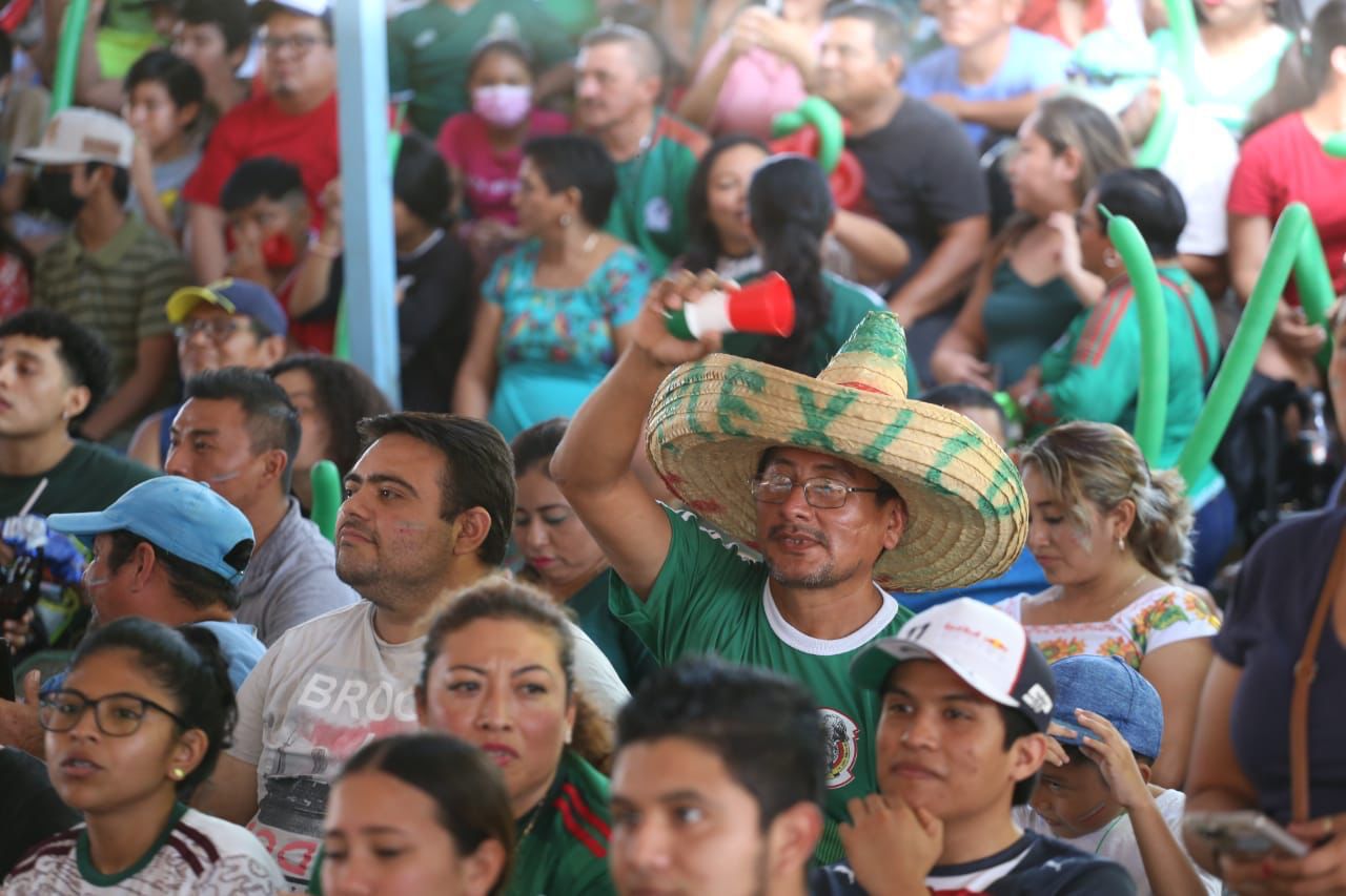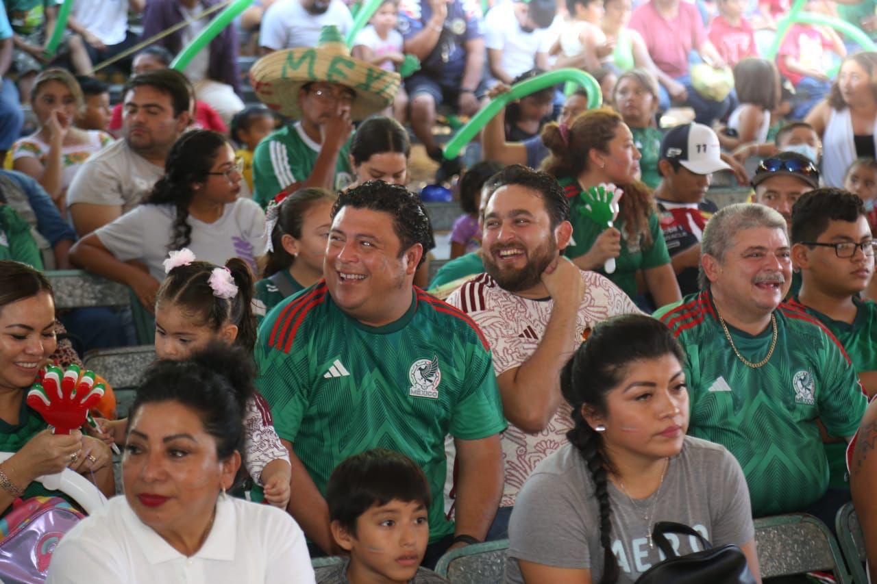 En esta segunda transmisión del partido de México, a través de una pantalla gigante, el alcalde Edwin Bojórquez Ramírez disfrutó junto con todos los asistentes de cada minuto de este partido. Hubo de todo: risas, gritos y enojo, emociones que resaltan en cada juego de fútbol.