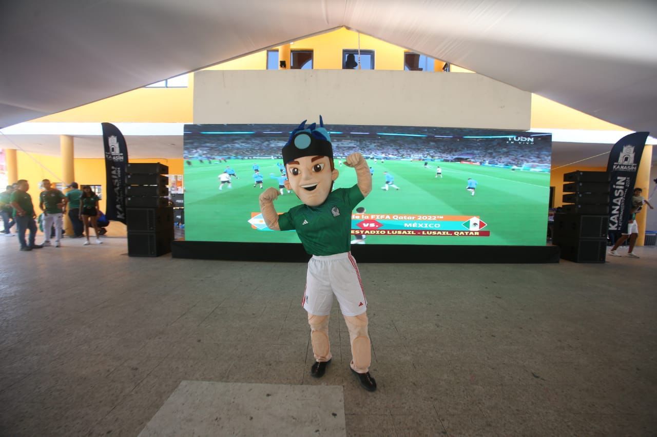 Aficionados portando sus playeras verdes se dieron cita en los bajos del Palacio Municipal de Kanasín con el objetivo de apoyar a la Selección Mexicana en su partido contra Argentino, esto durante su participación en el mundial de Qatar 2022.