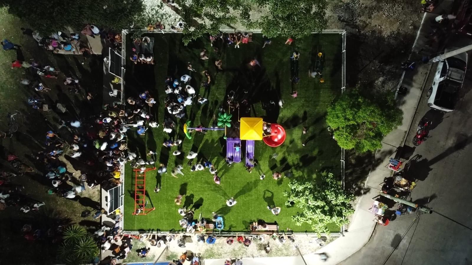 El renovado lugar cuenta con nueva cancha, luminarias, juegos infantiles con pasto sintético, porterías y redes nuevas, así como mallas en perfecto estado, entre otras mejoras.