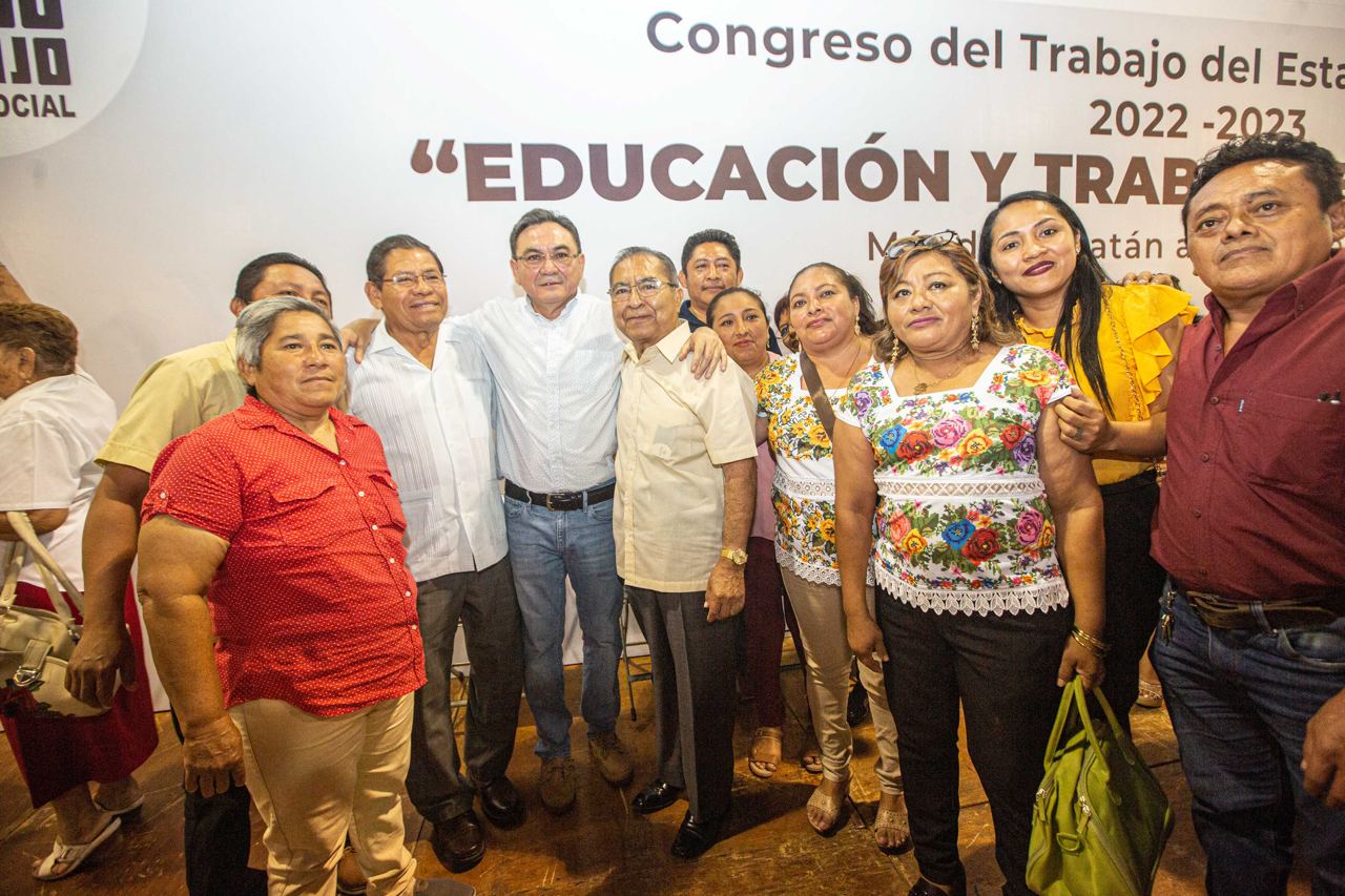 Recordó con mucho cariño a los grandes liderazgos sindicales que ha tenido Yucatán como don Gonzalo Navarro Báez y Mario Tránsito Chan Chan y reconoció la aportación que cada trabajadora y trabajador aportan a la economía del estado.
