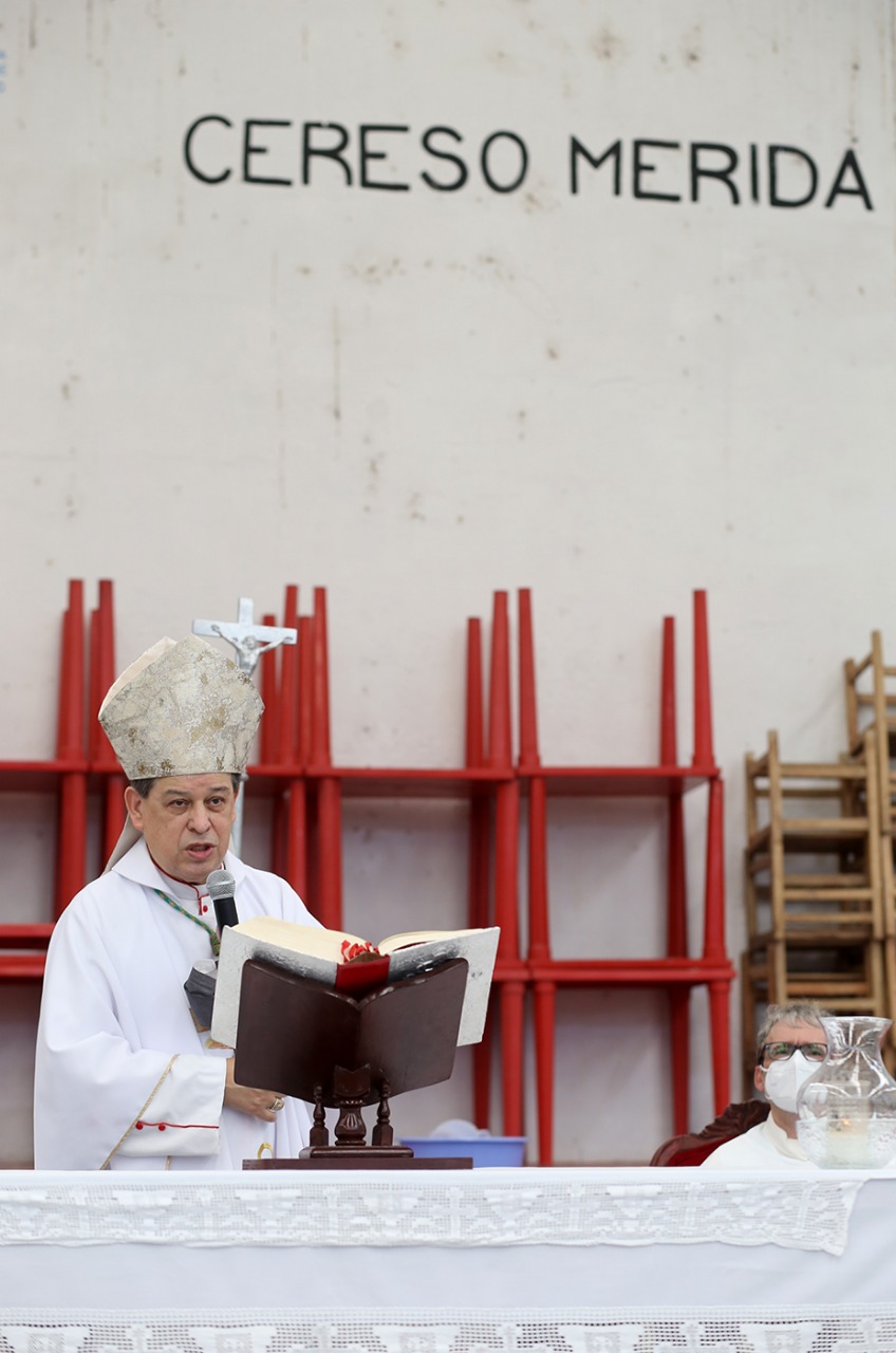 El acto católico se dio como parte de las celebraciones de la Semana Santa, este día la comunidad del Centro de Reinserción Social (Cereso) de Mérida llevó a cabo el tradicional rito del lavatorio de pies en el marco de la celebración de la “Misa de la Cena del Señor” oficiada por el arzobispo de Yucatán, Gustavo Rodríguez Vega.