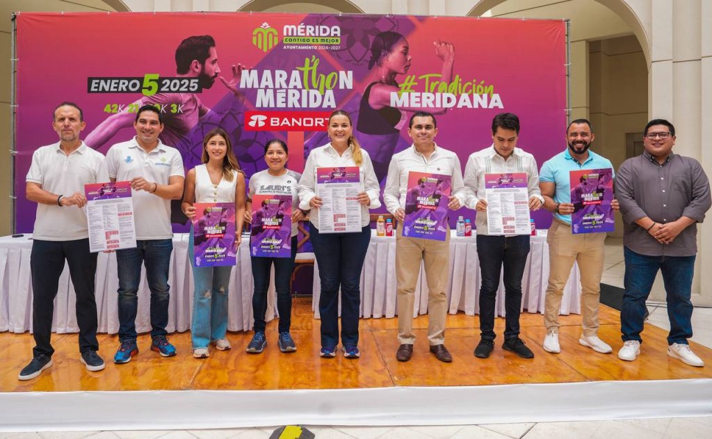 Por su parte, Jesús Pérez Ballote, director de Bienestar Humano del Ayuntamiento de Mérida, dio detalles de la convocatoria del festejo deportivo que saldrá del Monumento a la Patria, en la emblemática avenida Paseo de Montejo. A las 5:00 horas saldrán los corredores de 42.195 kilómetros. A las 5:45 horas, los participantes del medio maratón y a las 6:00 horas, los competidores de los 10 kilómetros. Finalmente, a las 6:05 horas, los de la caminata de 3 kilómetros.