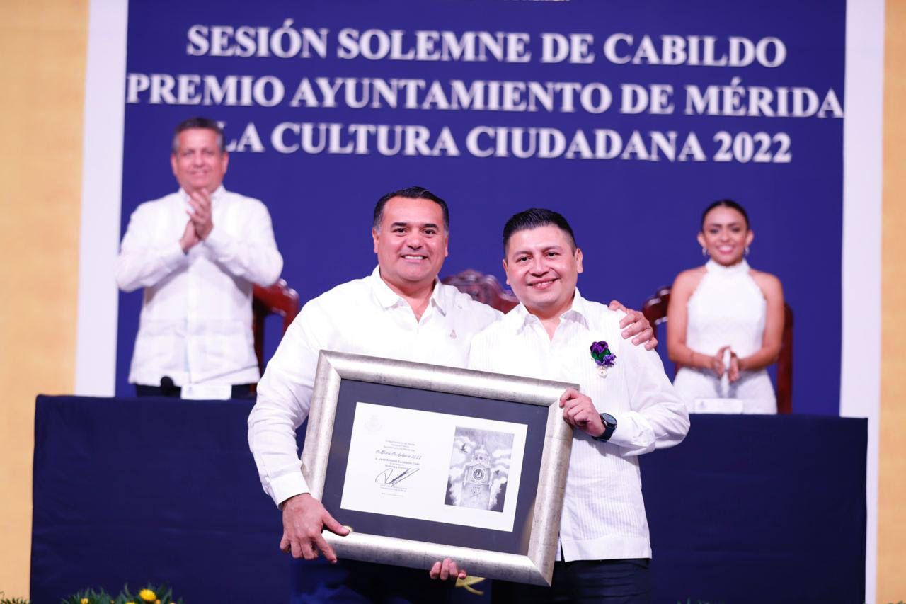 En Sesión Solemne de Cabildo, el Alcalde Renán Barrera entrega el “Premio Ayuntamiento de Mérida a la Cultura Ciudadana 2022”.
