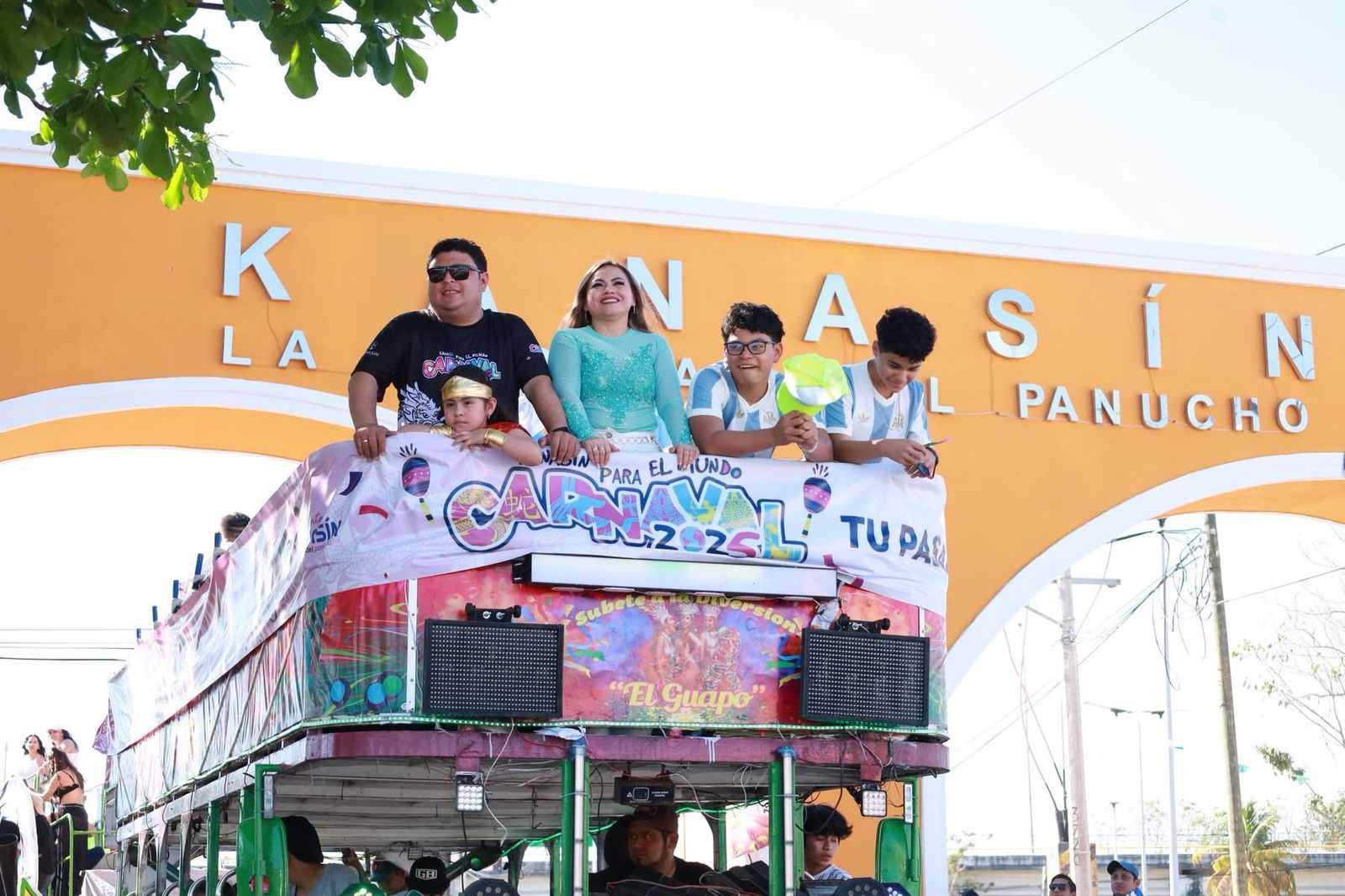 Edwin Bojórquez, alcalde Kanasín, acompañado de su familia, también participó de manera activa en todo el derrotero, disfrutando del apoyo de toda la gente. Al final del desfile, agradeció la participación de las miles de familias del municipio en el derrotero y expresó que hoy Kanasín tiene uno de los mejores carnavales de Yucatán.
