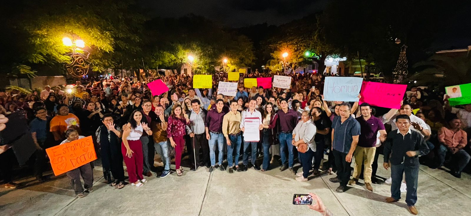 En un ambiente de euforia, pancartas, mensajes de apoyo y cánticos de “¡Manuel, Manuel, Manuel!”, el Dr. Manuel Díaz Suárez expresó su agradecimiento a quienes acudieron en el parque de la Mejorada a mostrar su respaldo.