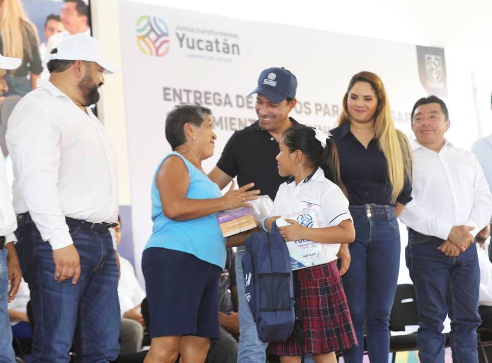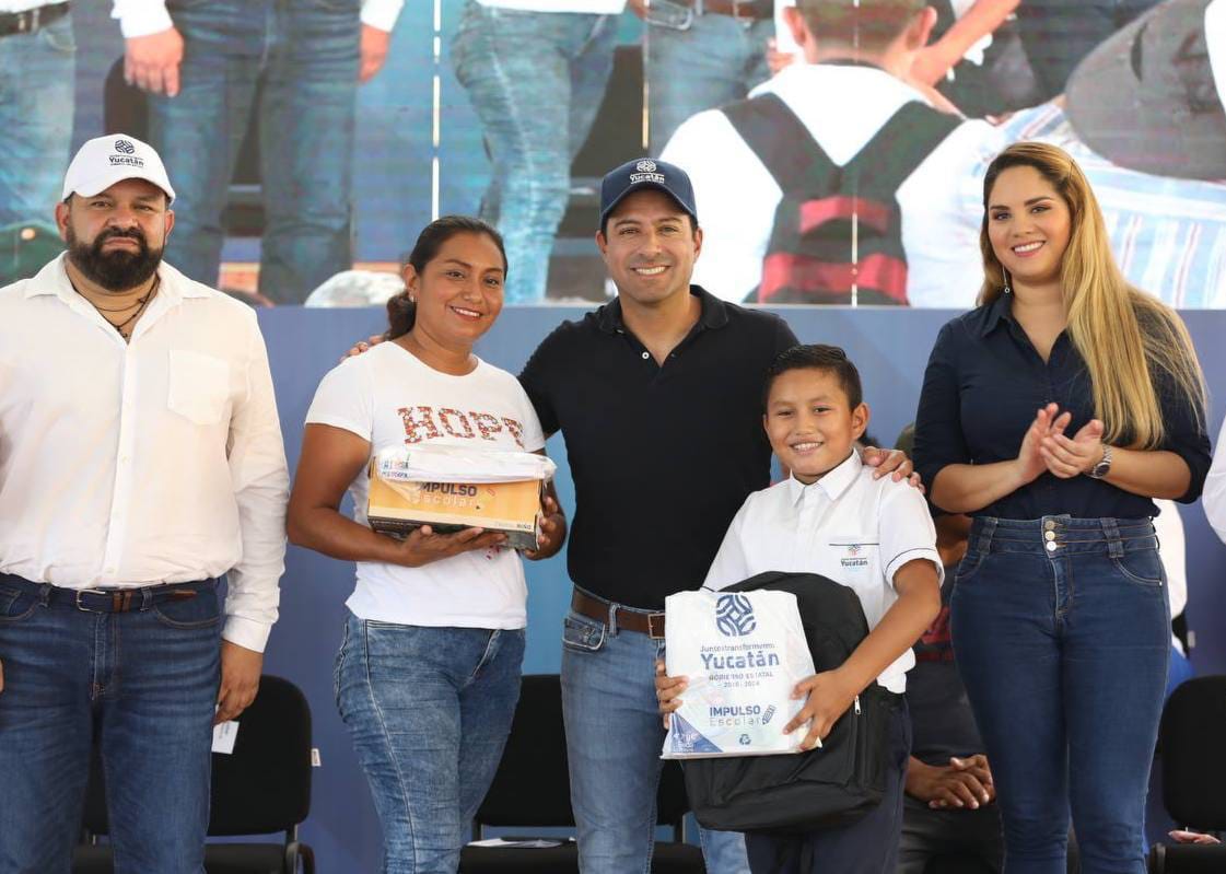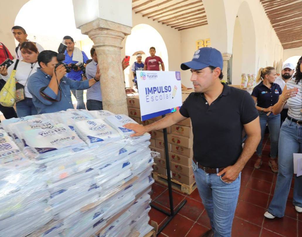 El Gobernador Mauricio Vila Dosal comenzó en Izamal la distribución de un total de 262 mil 795 paquetes de útiles escolares del programa Impulso Escolar para estudiantes de escuelas públicas de nivel primaria de todo el estado, que incluye 2 camisas de uniformes, una mochila y un par de zapatos, y secundaria de municipios del interior y comisarías de Mérida, para que las niñas, niños y jóvenes yucatecos cuenten con todo lo necesario ante el inicio del ciclo escolar 2023-2024, significando este apoyo un ahorro de 2,950 pesos por cada estudiante para los padres de familia.