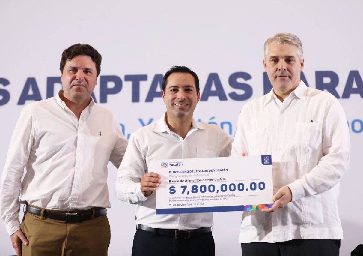 En el evento celebrado en el Centro de Convenciones y Exposiciones Yucatán Siglo XXI, Vila Dosal otorgó el donativo al representante legal del Banco de Alimentos de Mérida, José Trinidad Molina Casares con el cual se apoyará en una primera etapa a más de 7,500 personas de la zona.