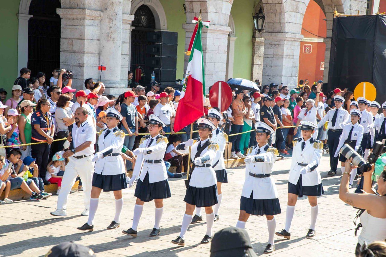 Destacó la participación de contingentes de vehículos automotores y eléctricos, lanchas, camiones de bomberos, cuatrimotos, motocicletas, ambulancias, escoltas y bandas de guerra durante esta fiesta cívica. Así como también marcharon elementos de la Marina, Cruz Roja, Cruz Ámbar, SSP, la Policía Municipal de Mérida, del Servicio Militar, de la Guardia Nacional y del Ejército.