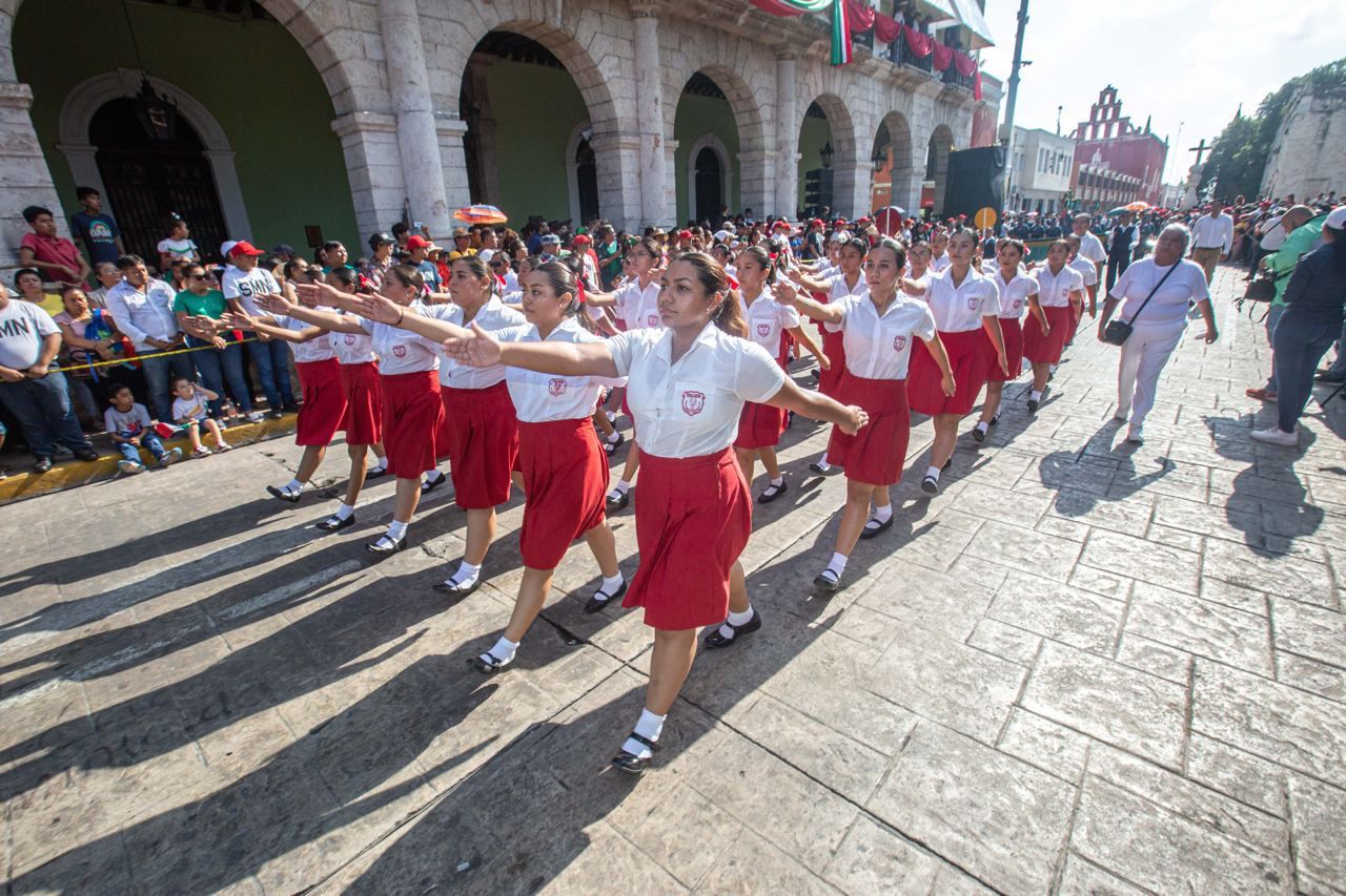 Posteriormente, la Universidad Autónoma de Yucatán (UADY) y la Escuela Secundaria Estatal número 1 “Agustín Vadillo Cicero”, fueron las que iniciaron con el desfile de los contingentes escolares, donde participaron planteles emblemáticos de la capital yucateca.