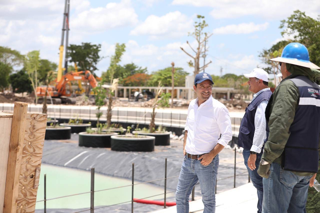 Acompañado de Alcalde de Mérida, Renán Barrera Concha, el Gobernador también visitó el andador lineal, la zona de vagones y aquellas en que habrá importantes atractivos, como el Mercado Gastronómico, el Skatepark, el Museo, andador circular, lago artificial, auditorio y anfiteatro.