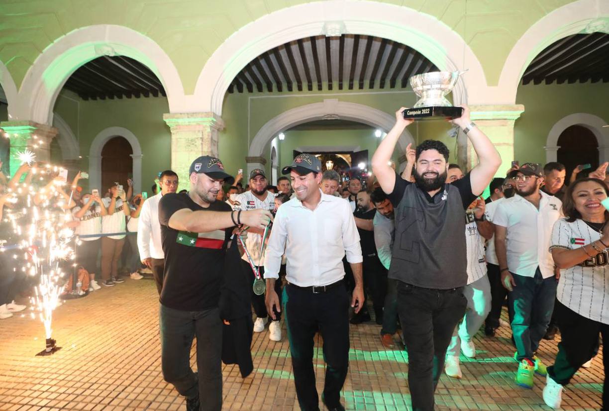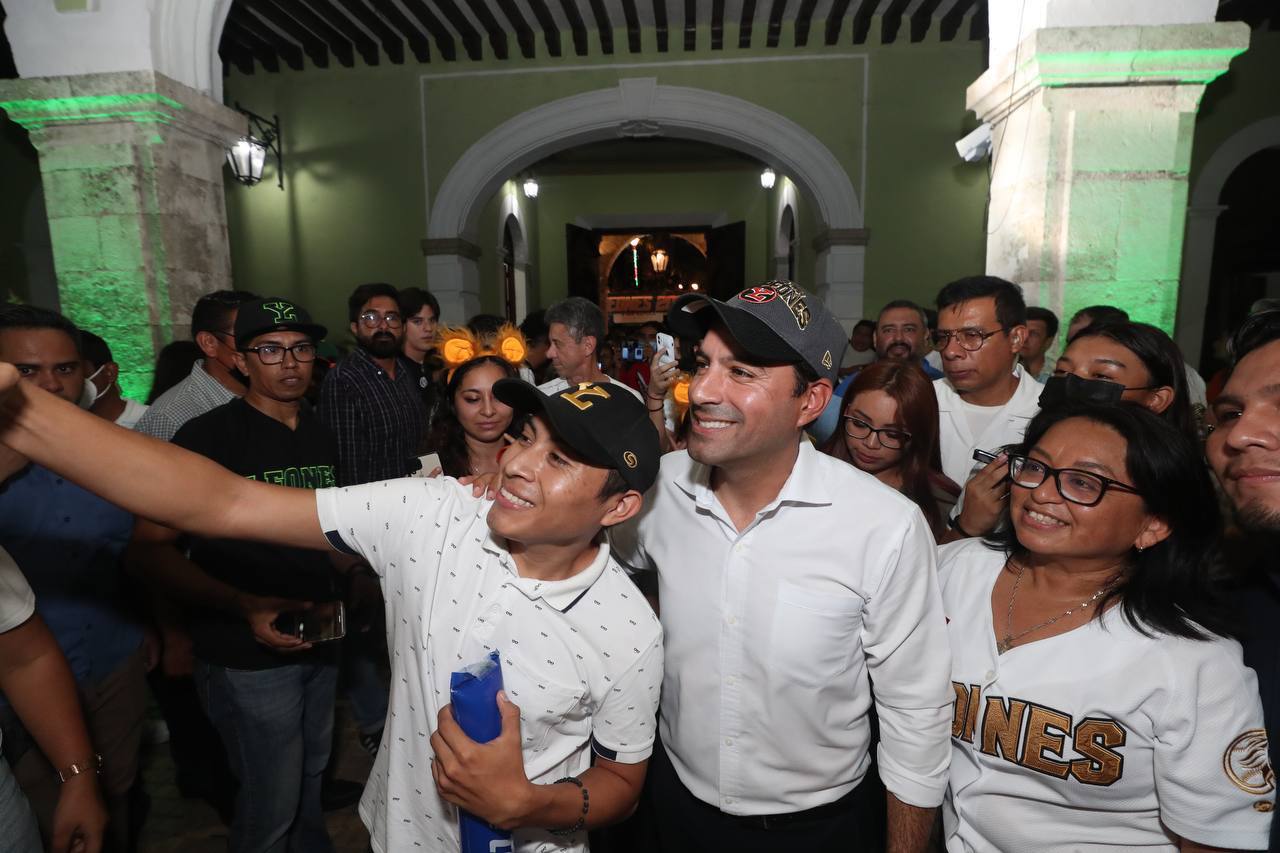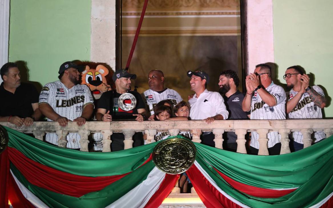 “Estoy muy contento y muy agradecido con la familia Arellano por el gran esfuerzo que han hecho, para hacer un equipo competitivo. Nos consta lo difícil que fue la pandemia, así que reconocemos su gran esfuerzo Leones de Yucatán y su directiva”, señaló el Gobernador desde el balcón central de Palacio de Gobierno.