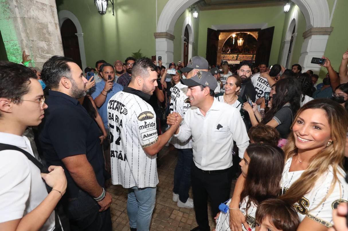 “Estoy muy contento y muy agradecido con la familia Arellano por el gran esfuerzo que han hecho, para hacer un equipo competitivo. Nos consta lo difícil que fue la pandemia, así que reconocemos su gran esfuerzo Leones de Yucatán y su directiva”, señaló el Gobernador desde el balcón central de Palacio de Gobierno.
