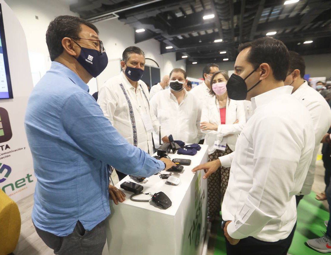 Durante su recorrido por la muestra, en el salón “Chichén Itzá” del Centro de Convenciones “Siglo XXI”, el Gobernador y el titular de la Cámara Nacional de la Industria de Telecomunicaciones e Informática (Canieti) Yucatán, Víctor Julián Morales Ricas, conocieron Egob, una plataforma tecnológica integral para la transformación digital de los gobiernos, ya que acerca a la ciudadanía la gestión de todos sus trámites y servicios, en un mismo lugar, de manera fácil, rápida y segura.