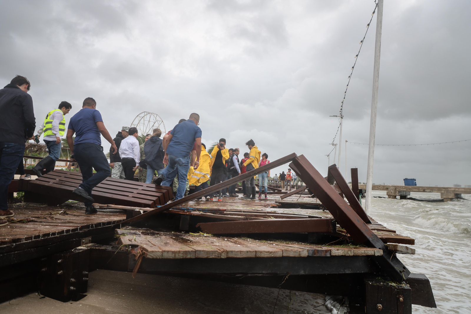 Finalmente, acompañado del alcalde local, Erik Rihani González, así como de autoridades de la Marina y Sedena, Díaz Mena recorrió el famoso “Muelle de Chocolate” para constatar el daño que sufrió este importante atractivo turístico, emblema de esta localidad costera…(OGY)
