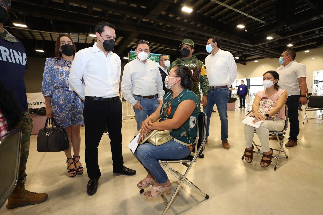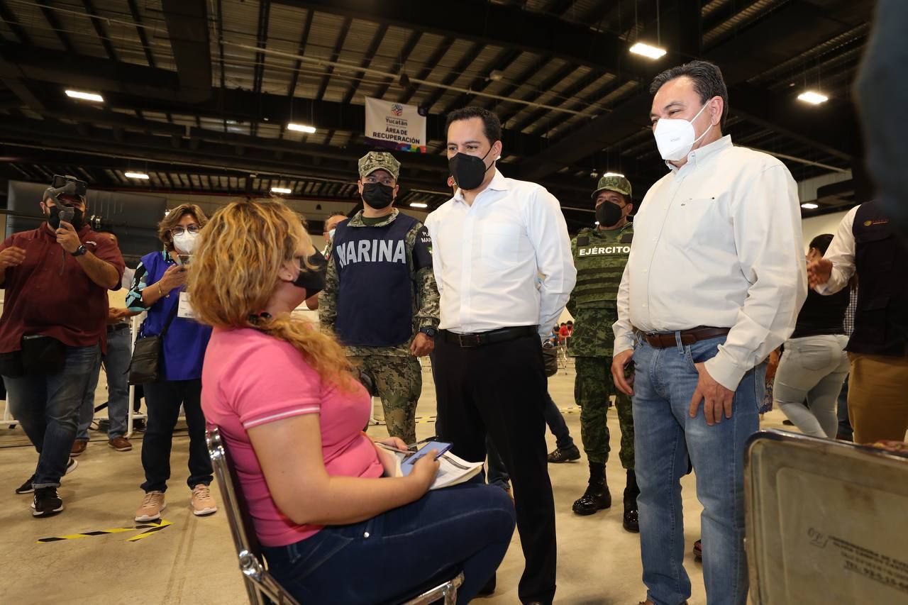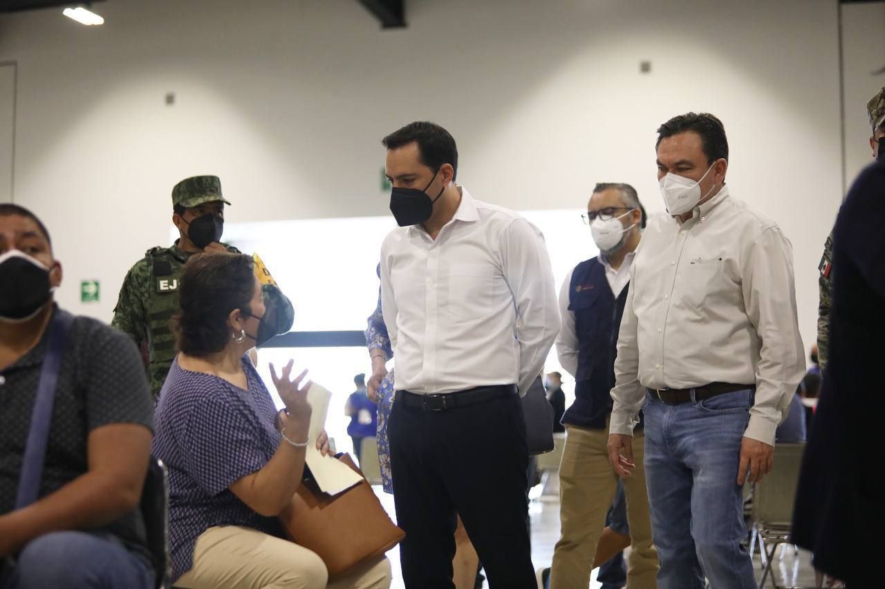 Junto con el titular de la Secretaría de Educación del Estado (Segey), Liborio Vidal Aguilar, y el Coordinador Estatal para la vacunación contra el Coronavirus, Capitán de Corbeta Carlos Gómez Montes de Oca, Vila Dosal recorrió el módulo instalado en el Centro de Convenciones Yucatán Siglo XXI, donde aseguró existen vacunas suficientes para continuar con este proceso, y pidió al personal docente registrarse en la plataforma federal para que les asigne el horario para la aplicación de sus dosis de refuerzo y así evitar aglomeraciones.