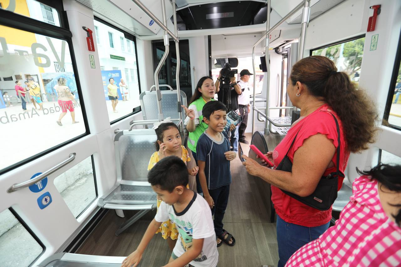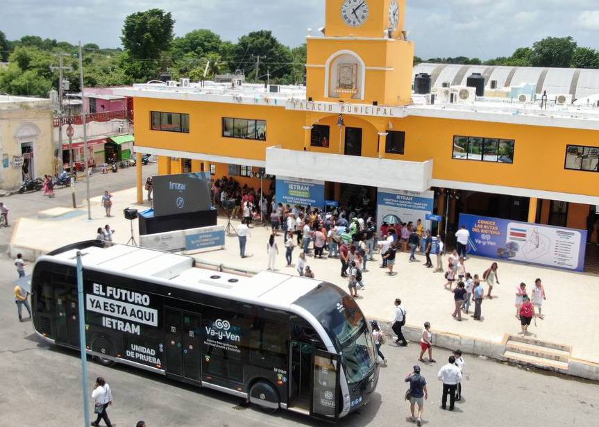 Con el objetivo de verificar su infraestructura, batería, carga y rendimiento, el autobús demo del Ie-tram realizó su primer recorrido de prueba, del Parque de la Plancha al Palacio Municipal de Kanasín, donde estará en exhibición, desde este día hasta el jueves 13 del presente, para que los habitantes de esta localidad conozcan las bondades y comodidades que ofrece este transporte público 100% eléctrico.