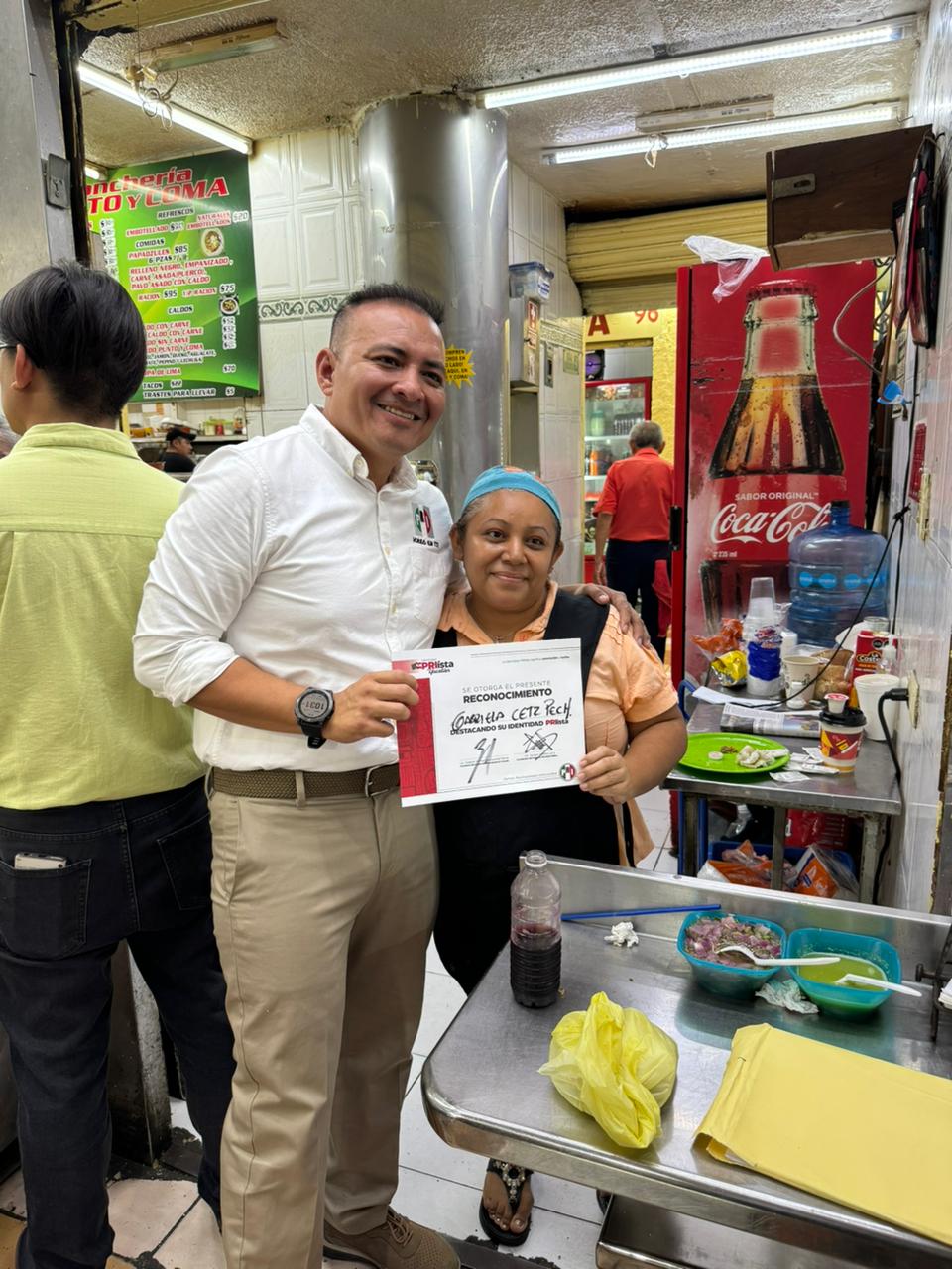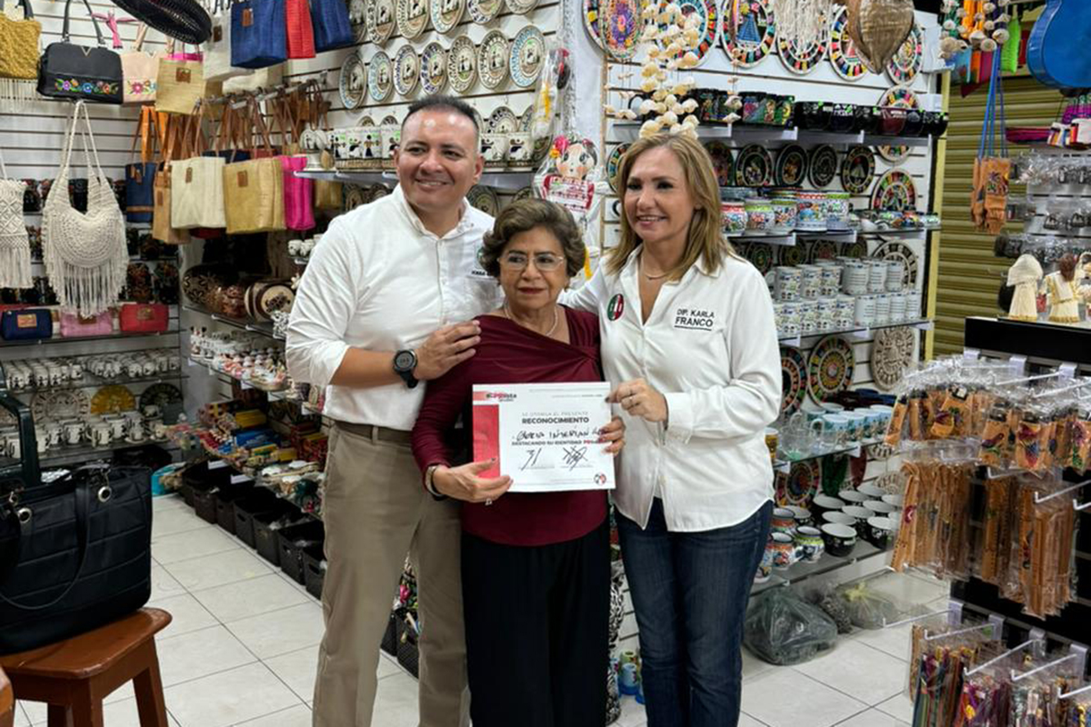 La diputada Karla Franco Blanco, acompañó al coordinador del programa y estrechó los vínculos partidistas con los locatarios de la calle 60 entre 65 y 67