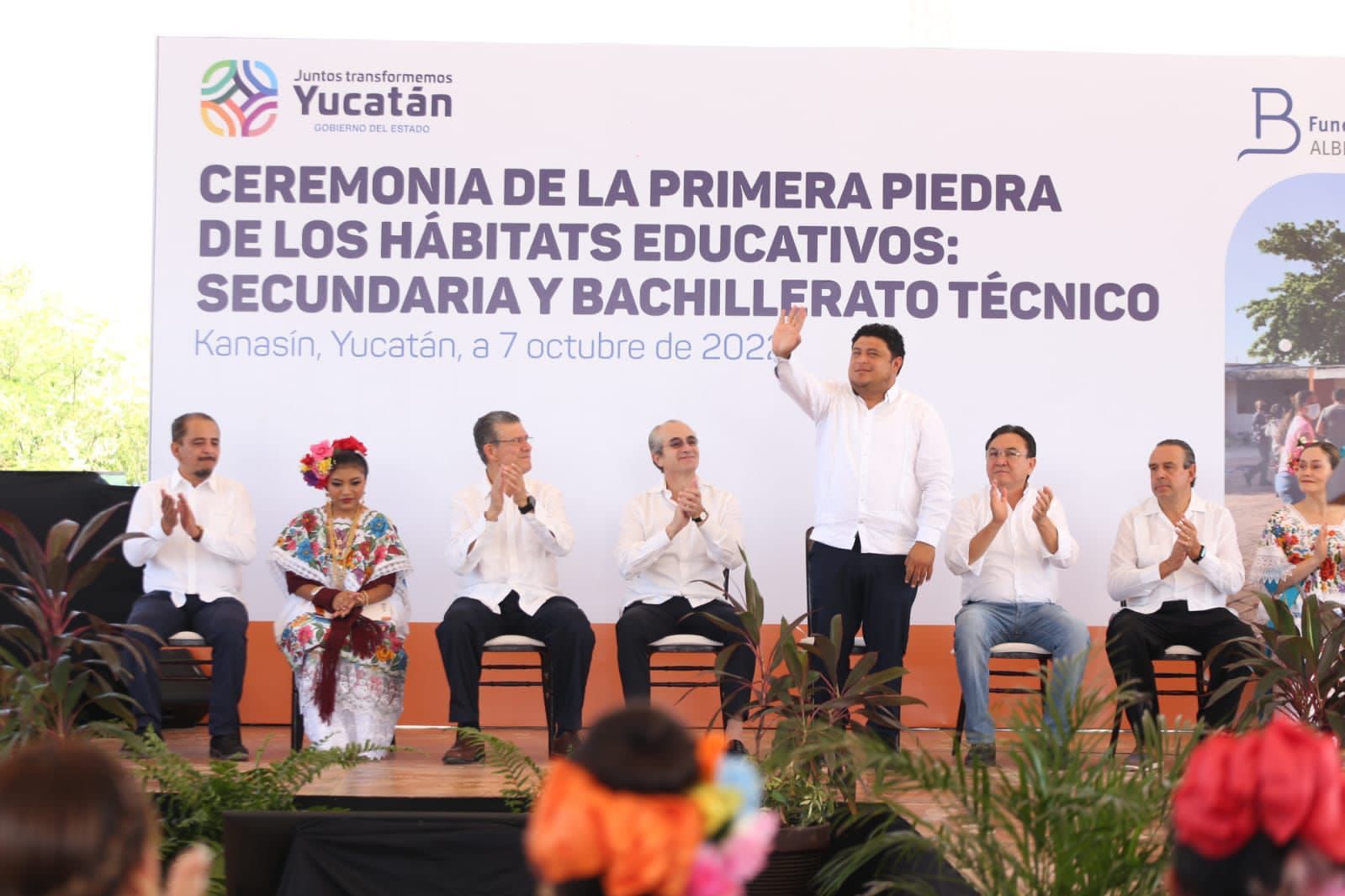 Se coloca la primera piedra de lo que serán dos nuevas escuelas en Kanasín: una secundaria técnica y una preparatoria tecnológica, la primera en su tipo en Yucatán  / Después de 25 años, Kanasín tendrá una nueva escuela preparatoria, también se prevé que ambos planteles atenderán a más de 1,400 estudiantes
