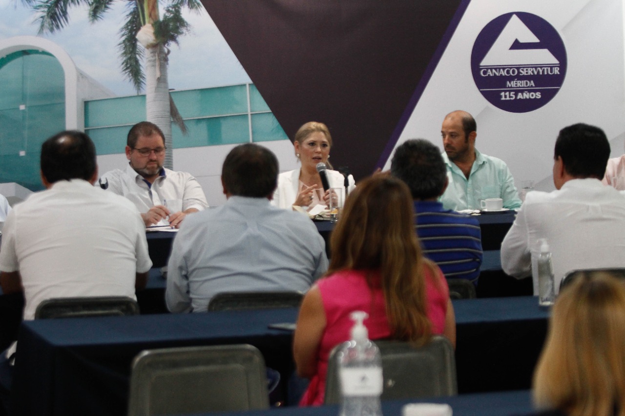 Para aportar propuestas que fortalezcan el desarrollo de los sectores productivos, empresarios de la Cámara Nacional de Comercio, Servicios y Turismo (Canaco Servytur) de Mérida, tendrán la oportunidad de participar en una mesa de trabajo con el secretario de Hacienda del Gobierno Federal, Rogelio Ramírez de la O, por gestión de la senadora por Yucatán, Verónica Camino Farjat.